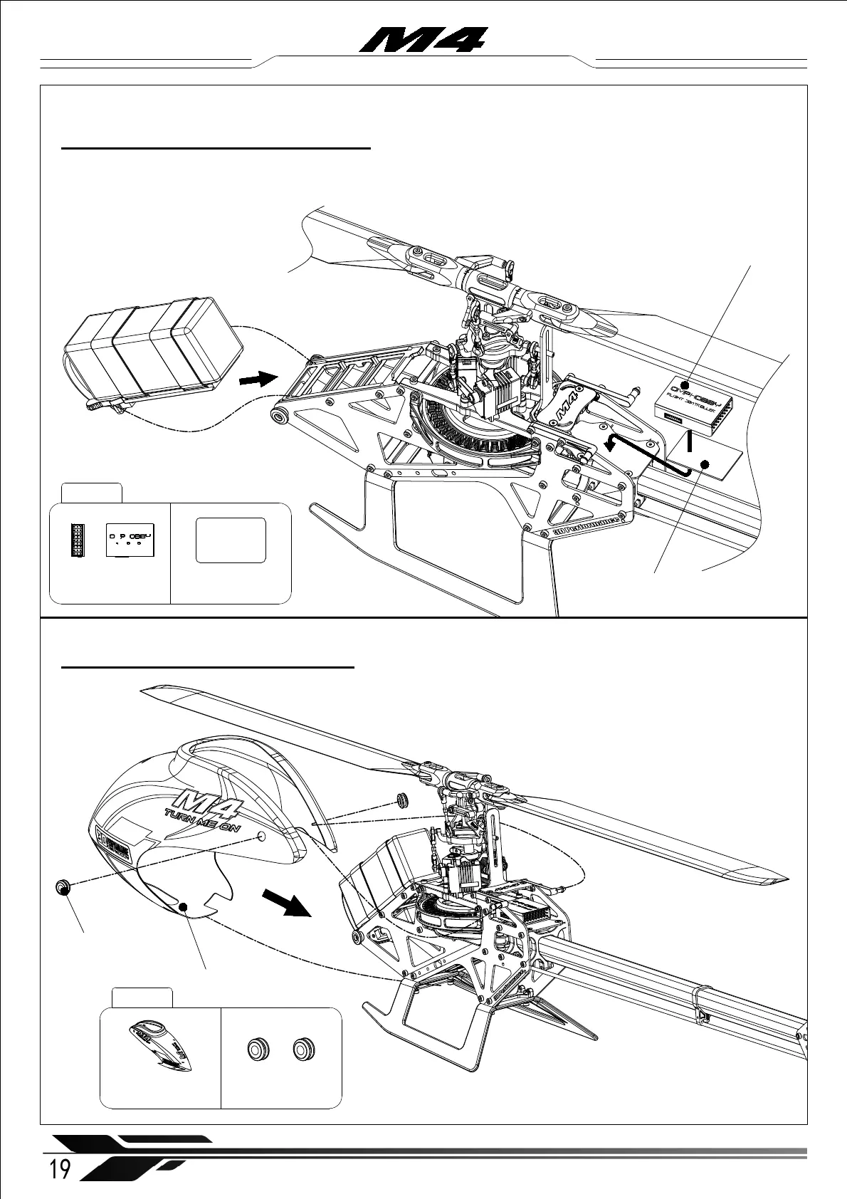OMPHOBBY M4 - ESC, FC, Battery Installation; Canopy Installation