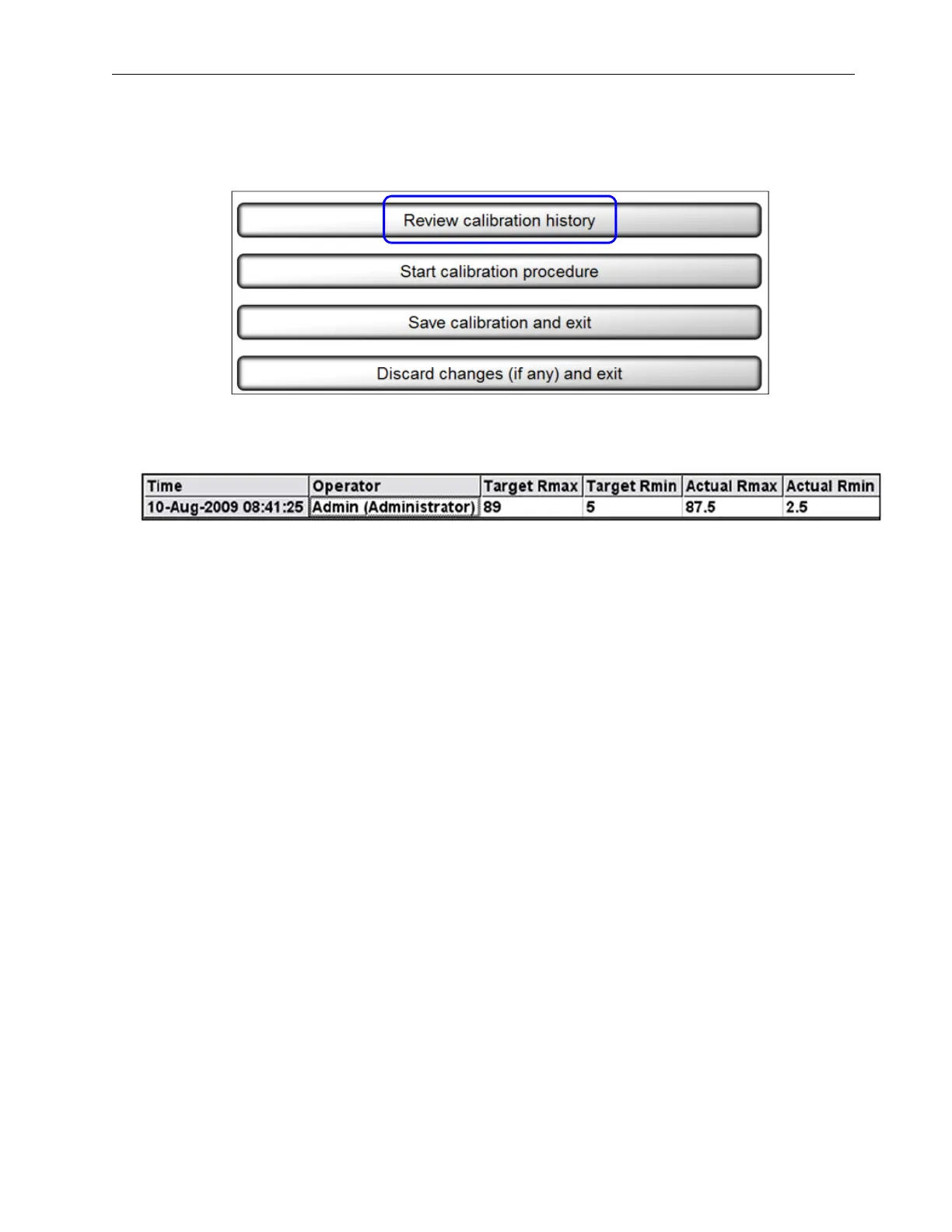 displays the “before” and “after” calibration image readings. The fields are not user editable in the viewer;