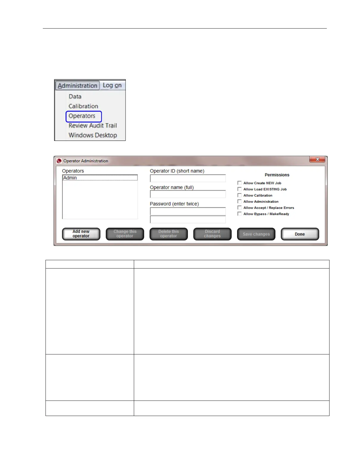 2. The following screen allows you to setup operators and operator permissions.