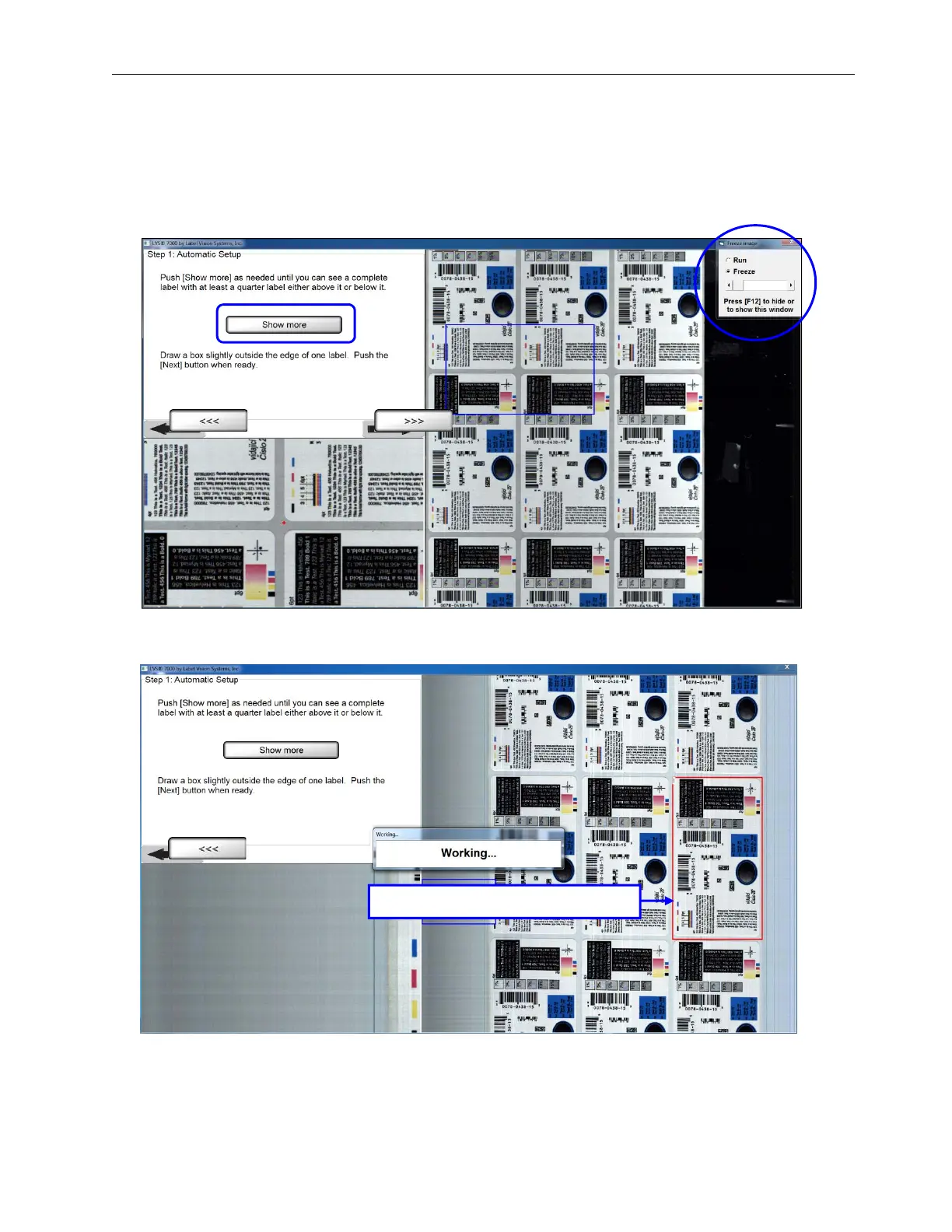 3. Draw a sector around an entire label and then click the right arrow button. A “Working” message appears