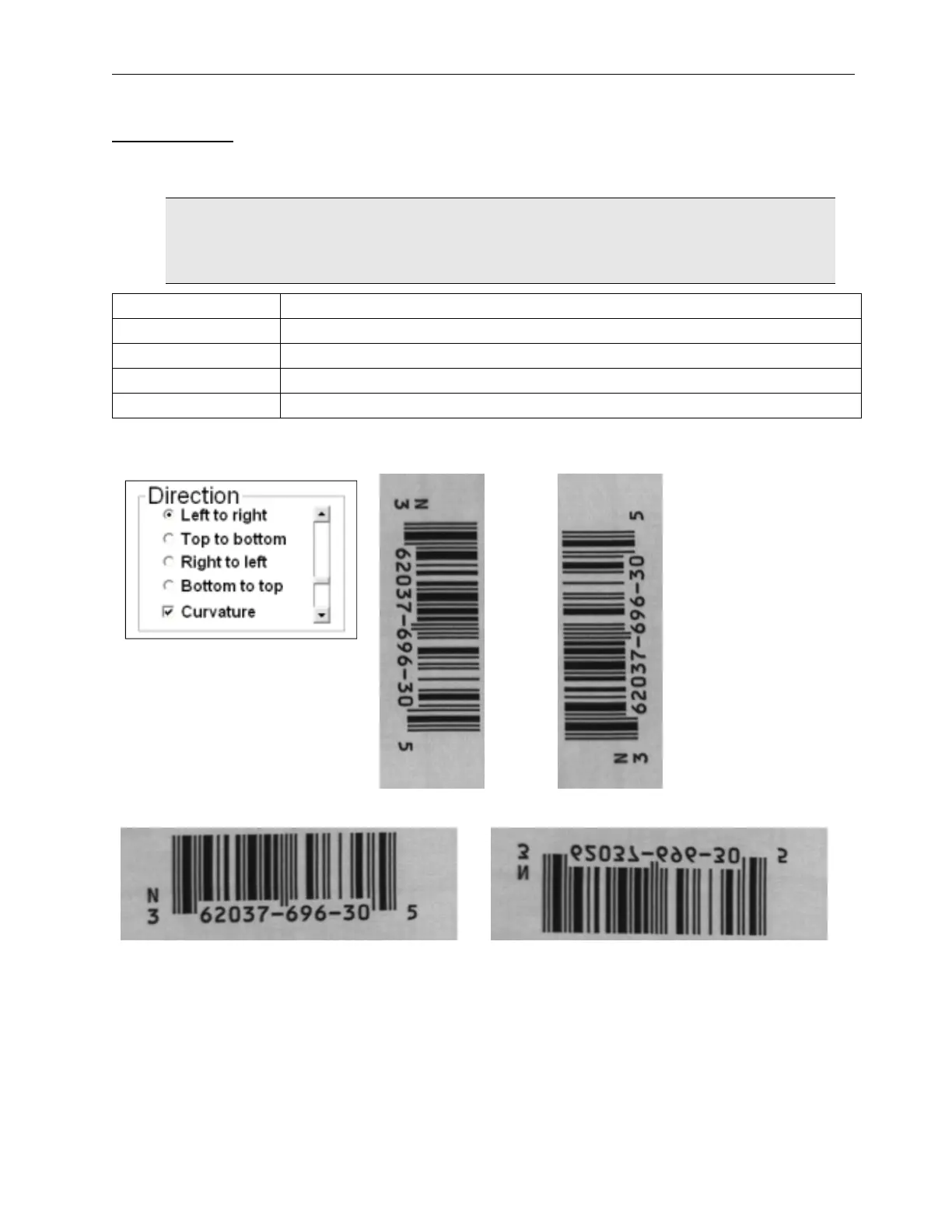 The box labeled Direction is applicable when using the OCR or OCV features; it tells the system the orientation
