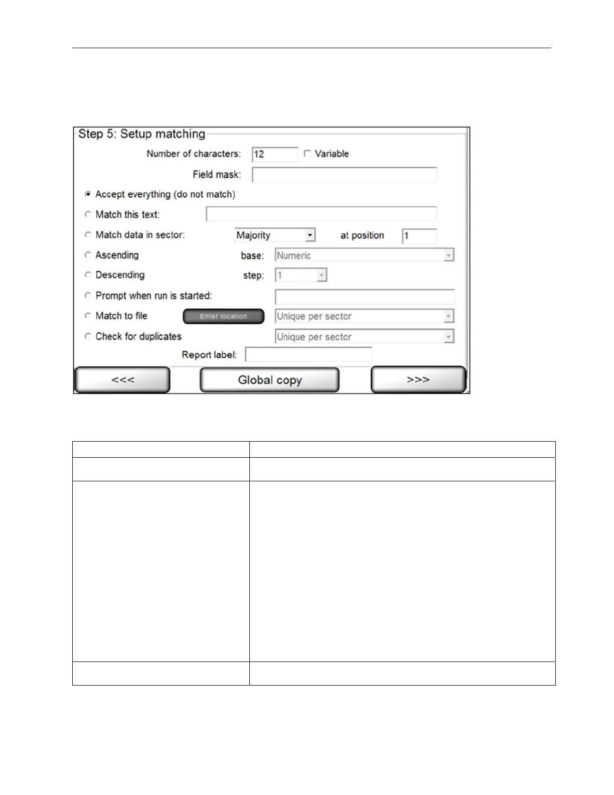 Step 5: Setup Matching is used to set up sequential, matching or incremental information checking. This step