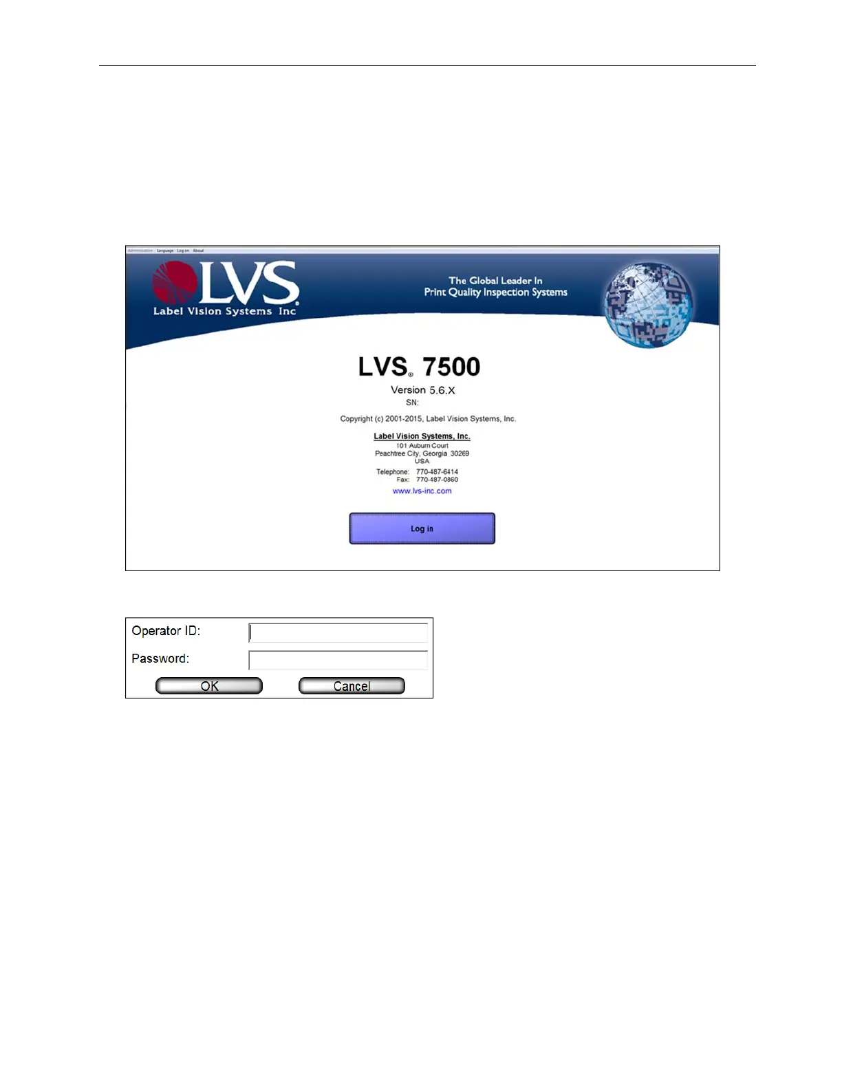 2. Click the Log In button. The Login box appears (see below). Enter the Operator ID and Password, and