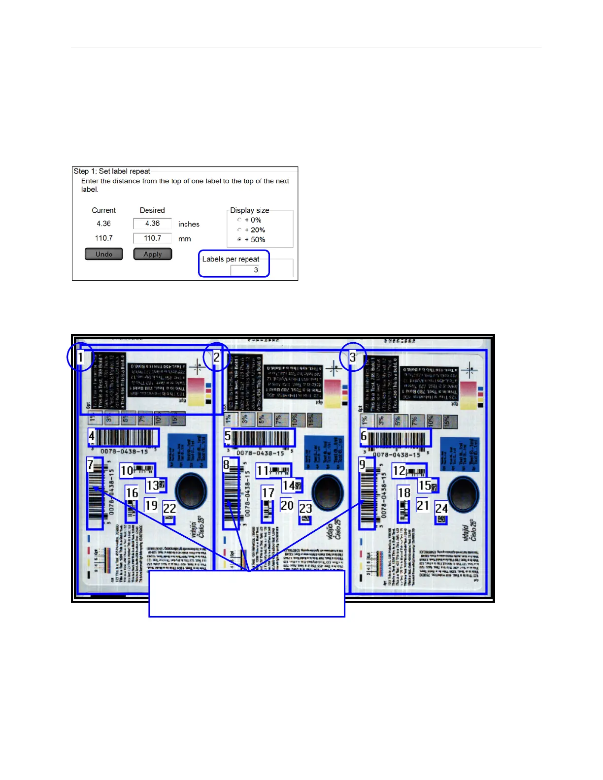 “Step 1: Set label repeat” screen (see below).
