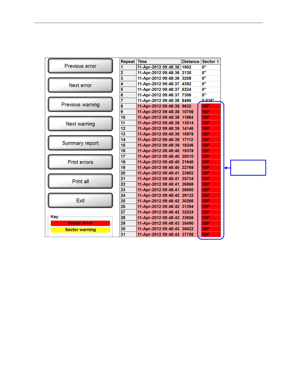 All bypassed repeats in the Reports/QC File Viewer appear with an !BP error code.