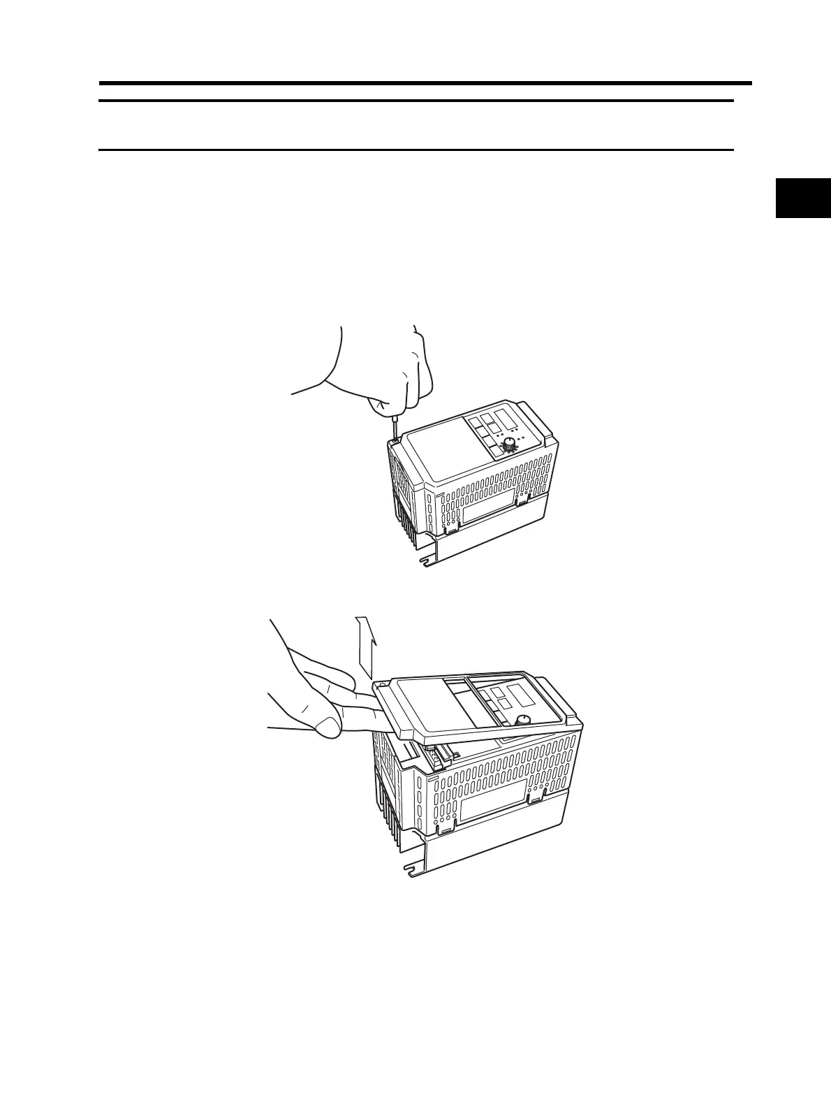 Loosen the mounting screw at the lower left of the front cover. Lift the bottom of the front cover to