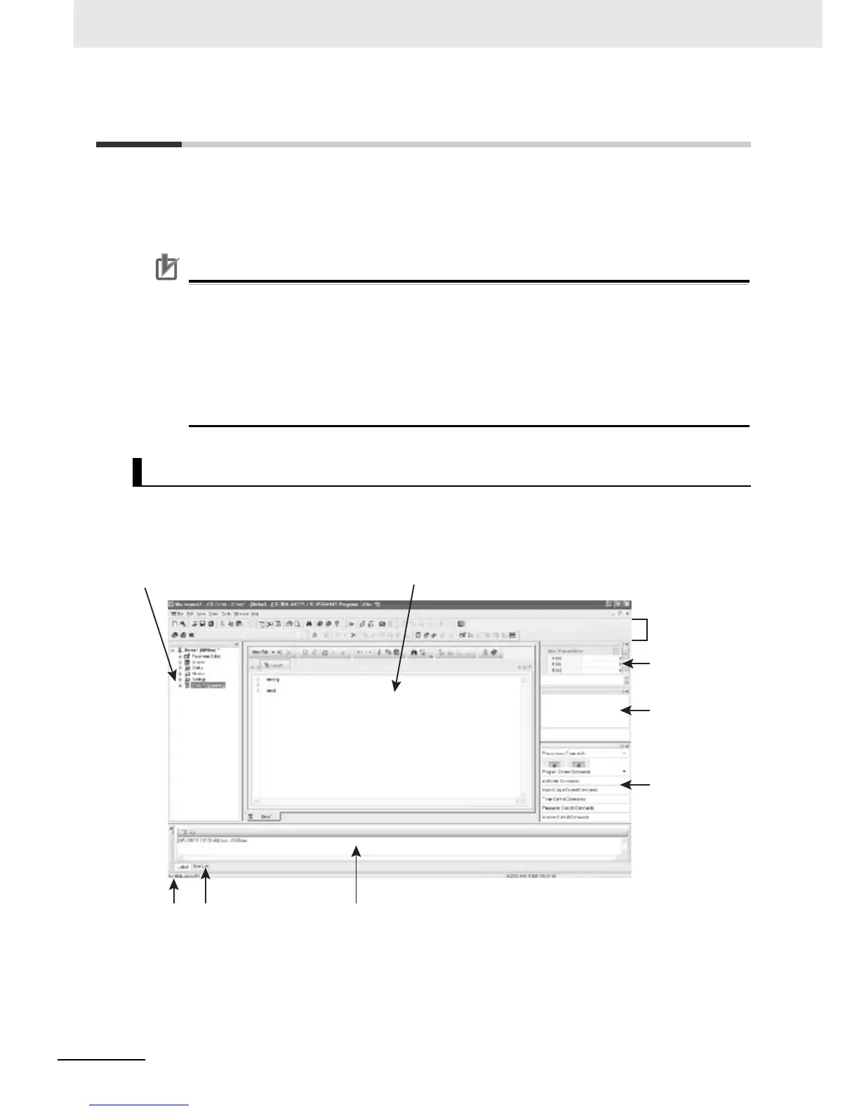 Inverter/Servomotor, CX-Drive. When the Drive Programming Editor is started, the screen layout of the