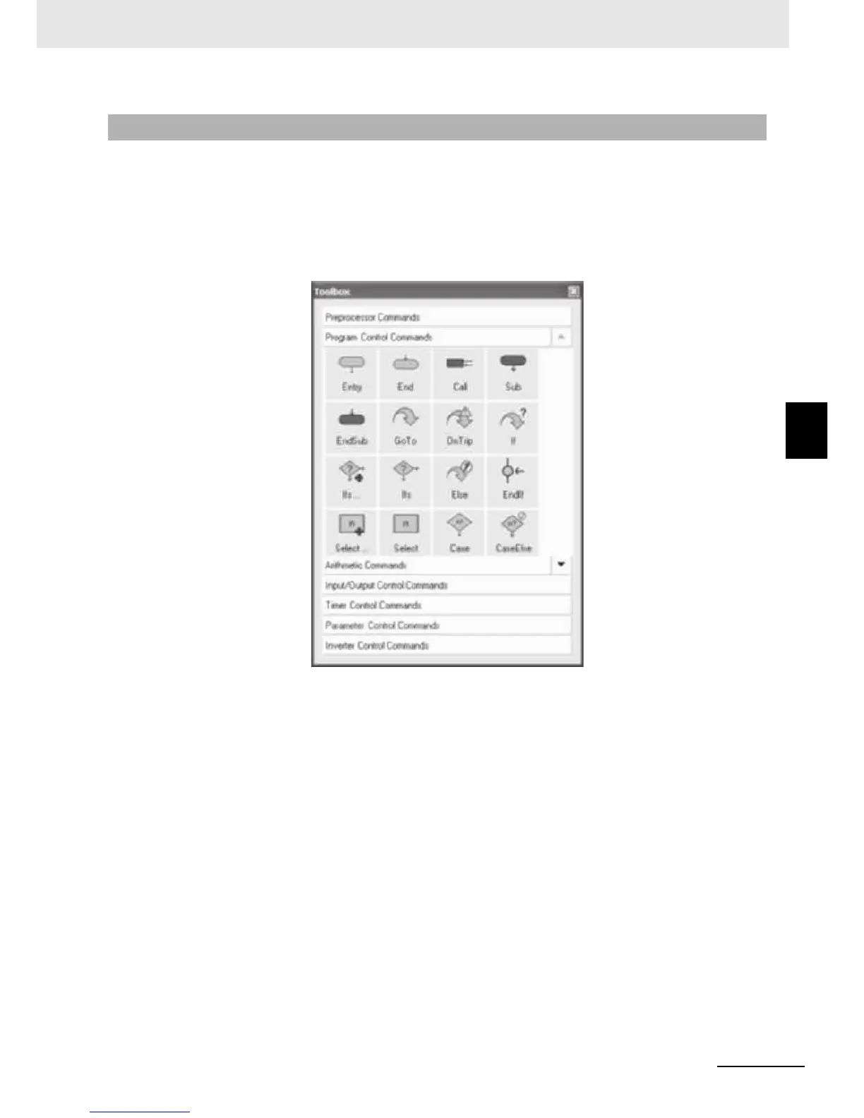The Toolbox is displayed when the Drive Programming Editor is started. You can also show or hide it by