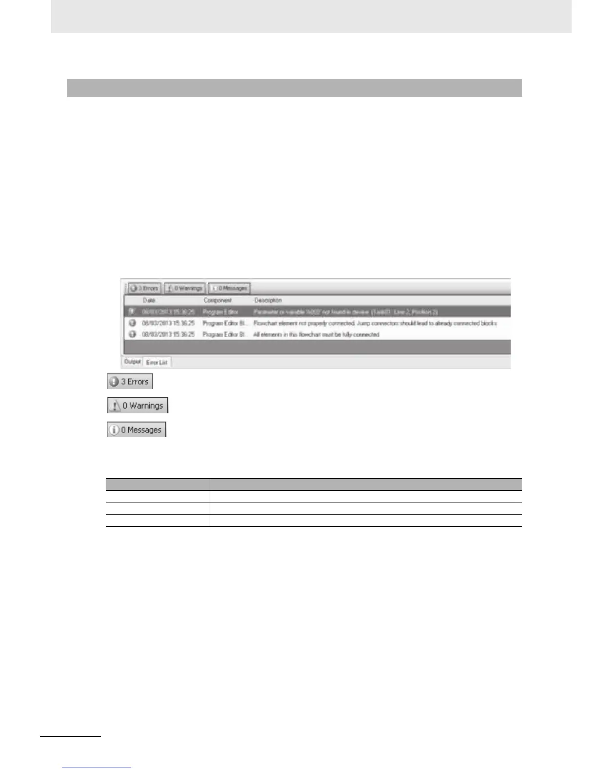 The list of errors related to the Drive Programming is displayed when you click the Error List tab in the