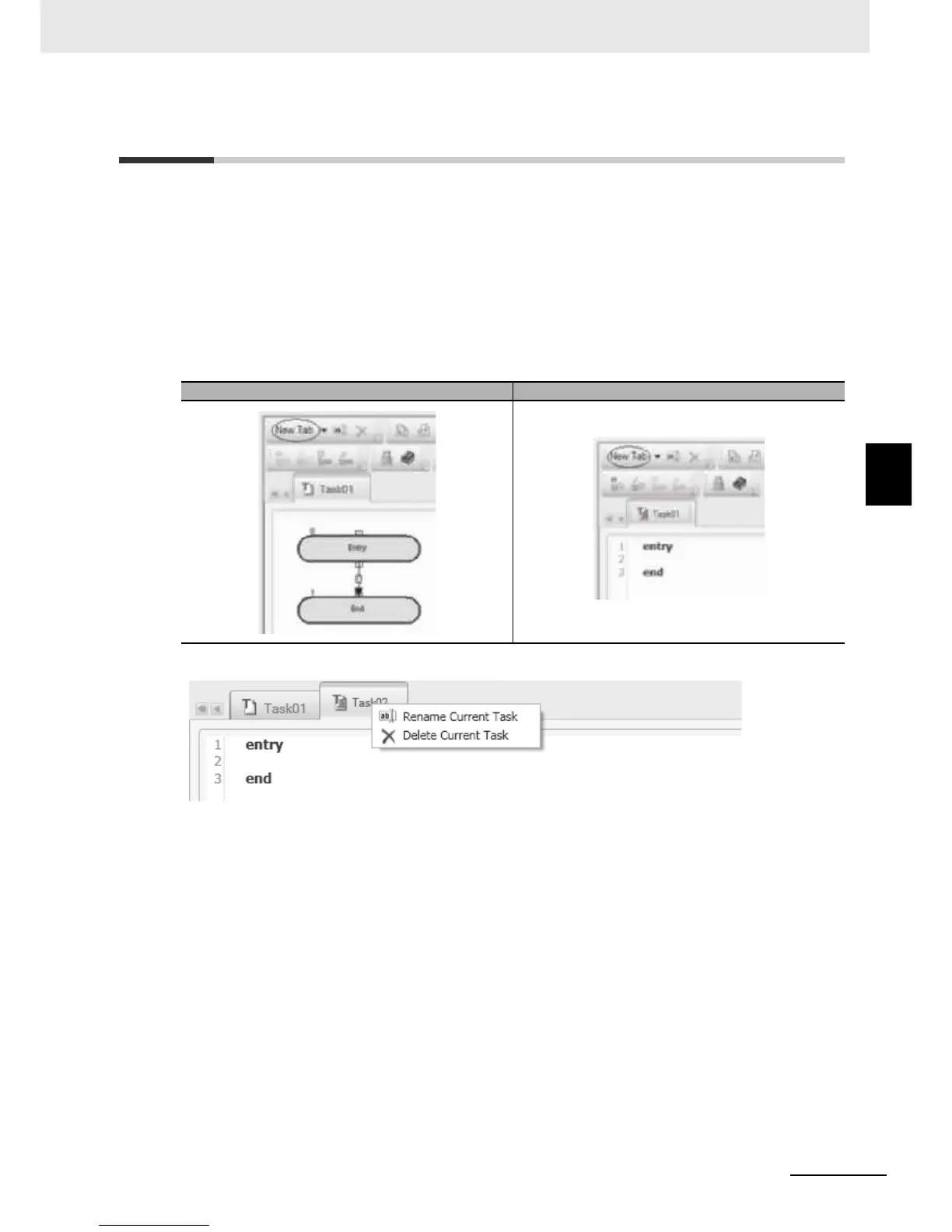 To add a new task, select [New Tab] in the toolbar of the Drive Programming Editor,