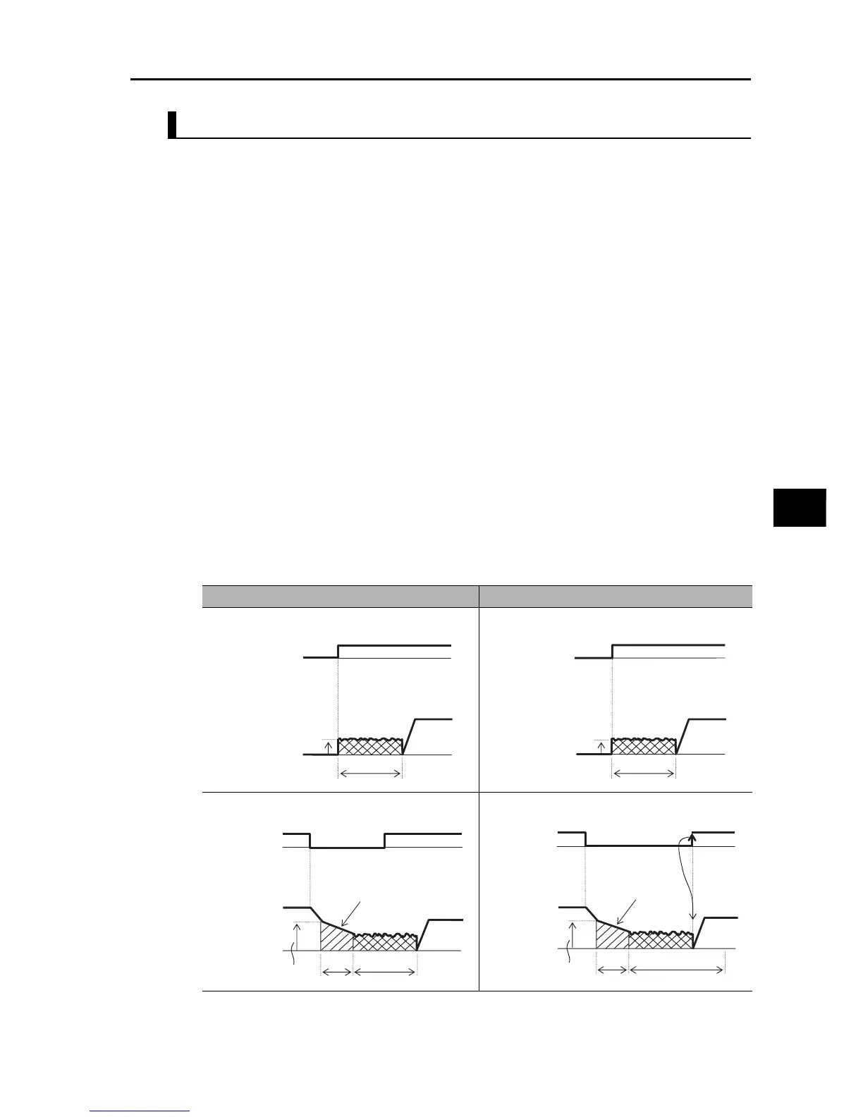 Braking Time using A058 regardless of the edge or level operation. (Examples 1-a, 1-b)