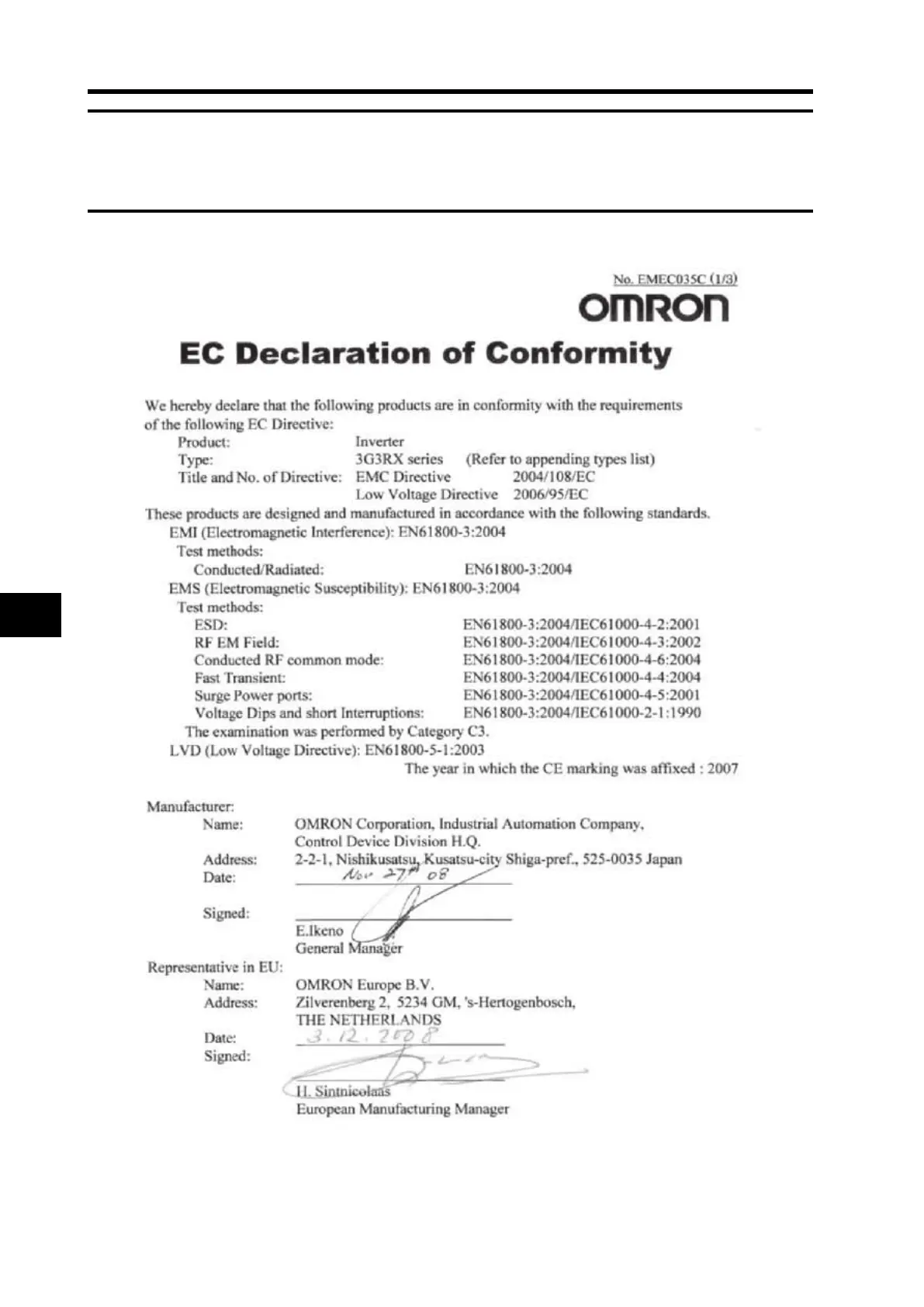 Omron 3G3RX - Appendix-4 EC Declaration of Conformity