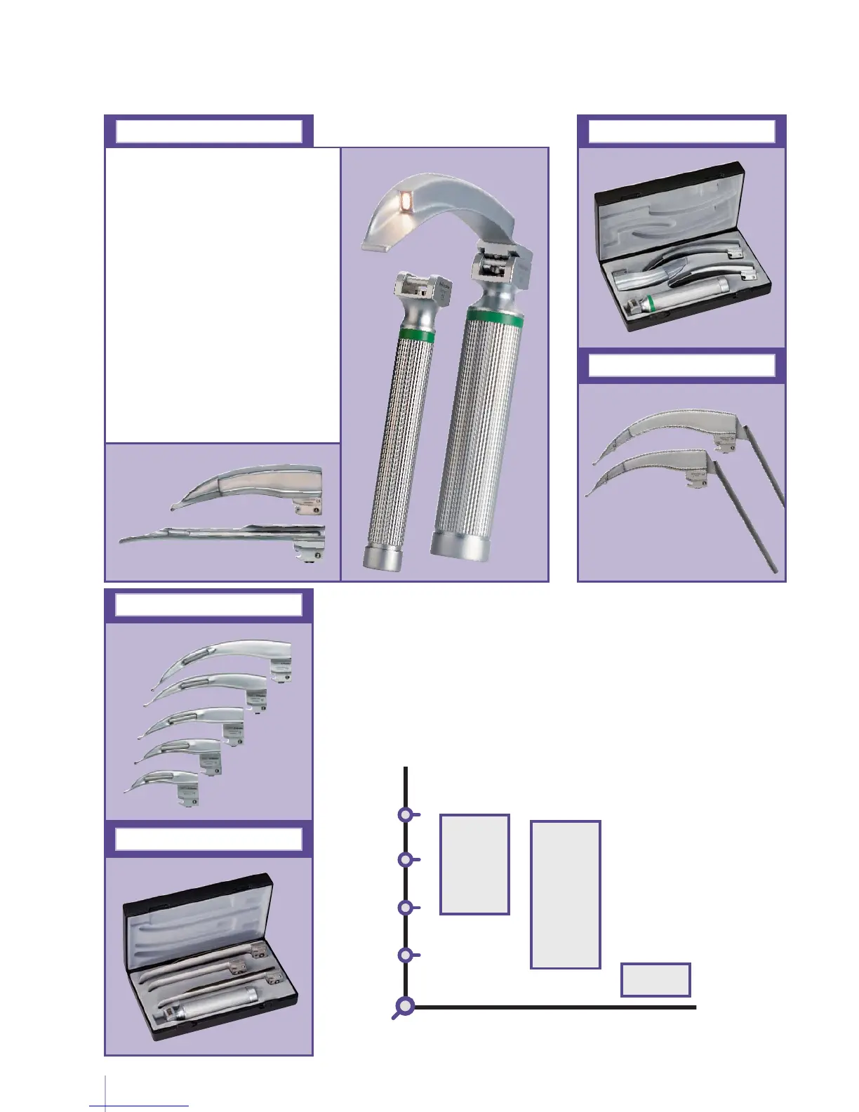 · Wide selection of laryngoscope sets for paediatrics and adults