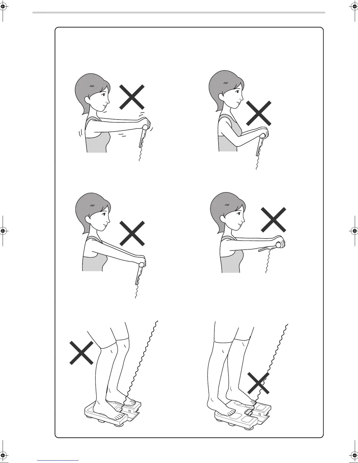 Incorrect posture may result in inaccurate measurement of body composition.