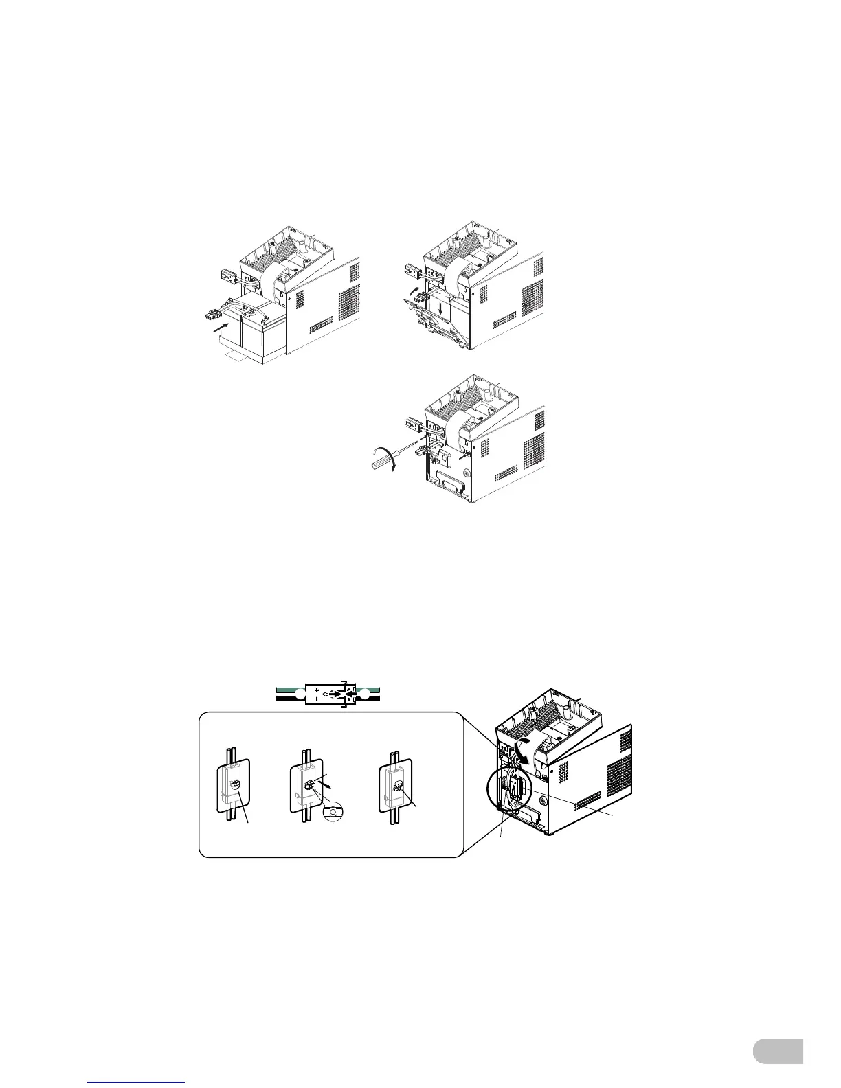 5. Insert a new battery into the UPS as far as it will go. 1)