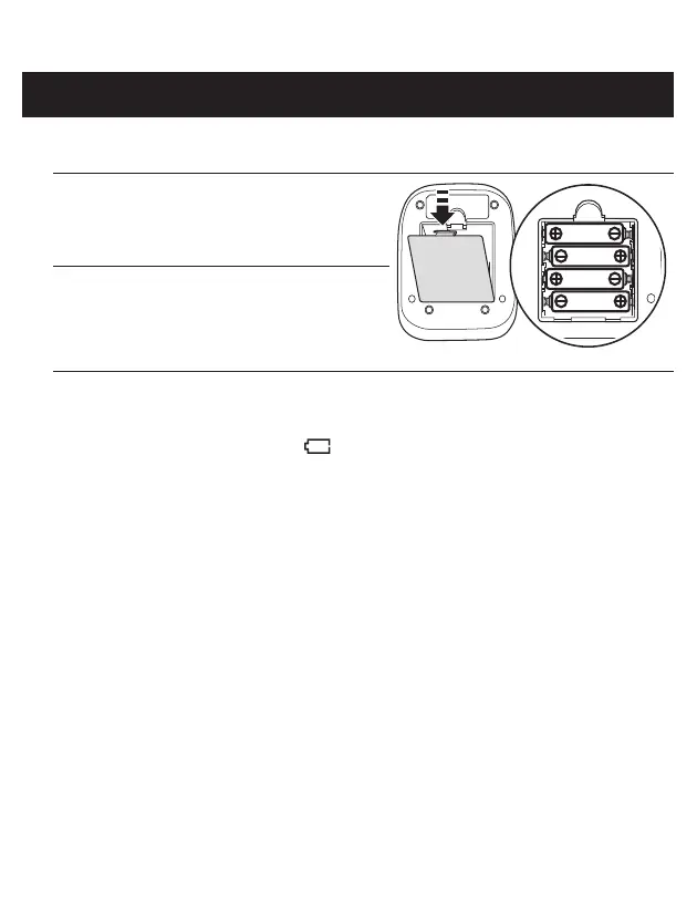 2. Insert 4 “AA” batteries as indicated