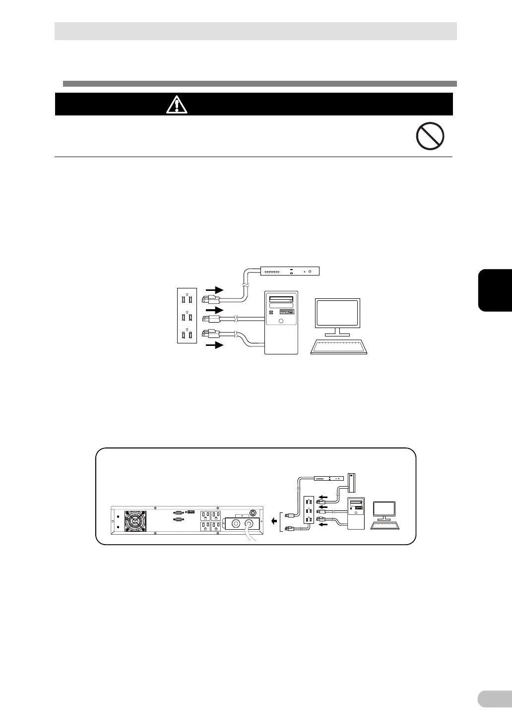 ・ If you need more output receptacles than those of the UPS, purchase a plug strip and