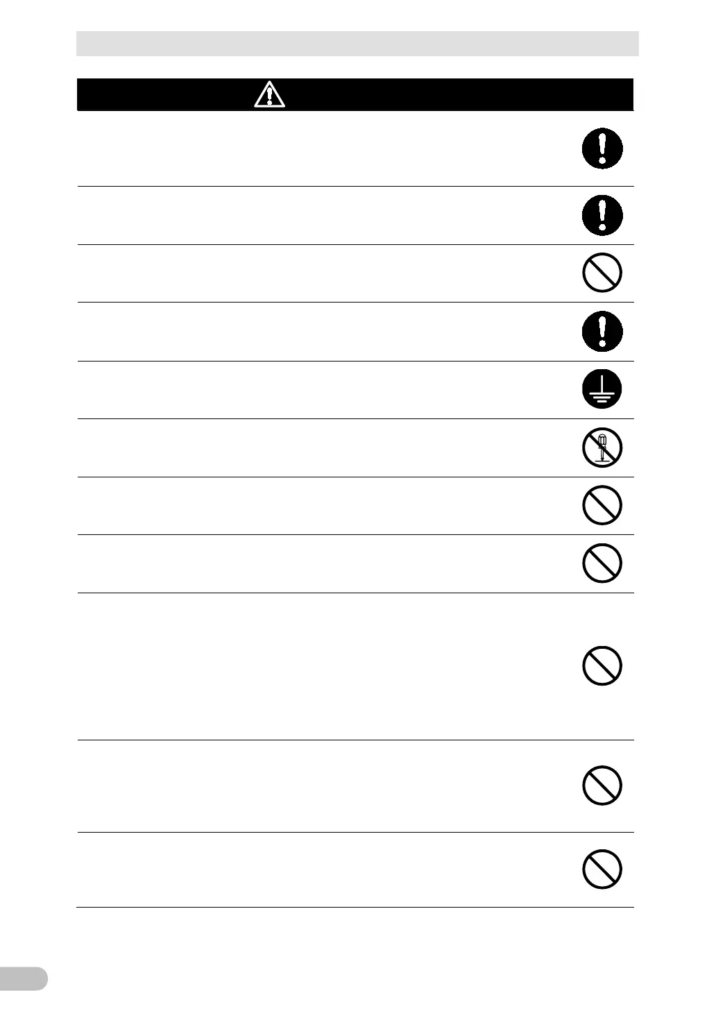● 可能有导致触电、火灾的危险。