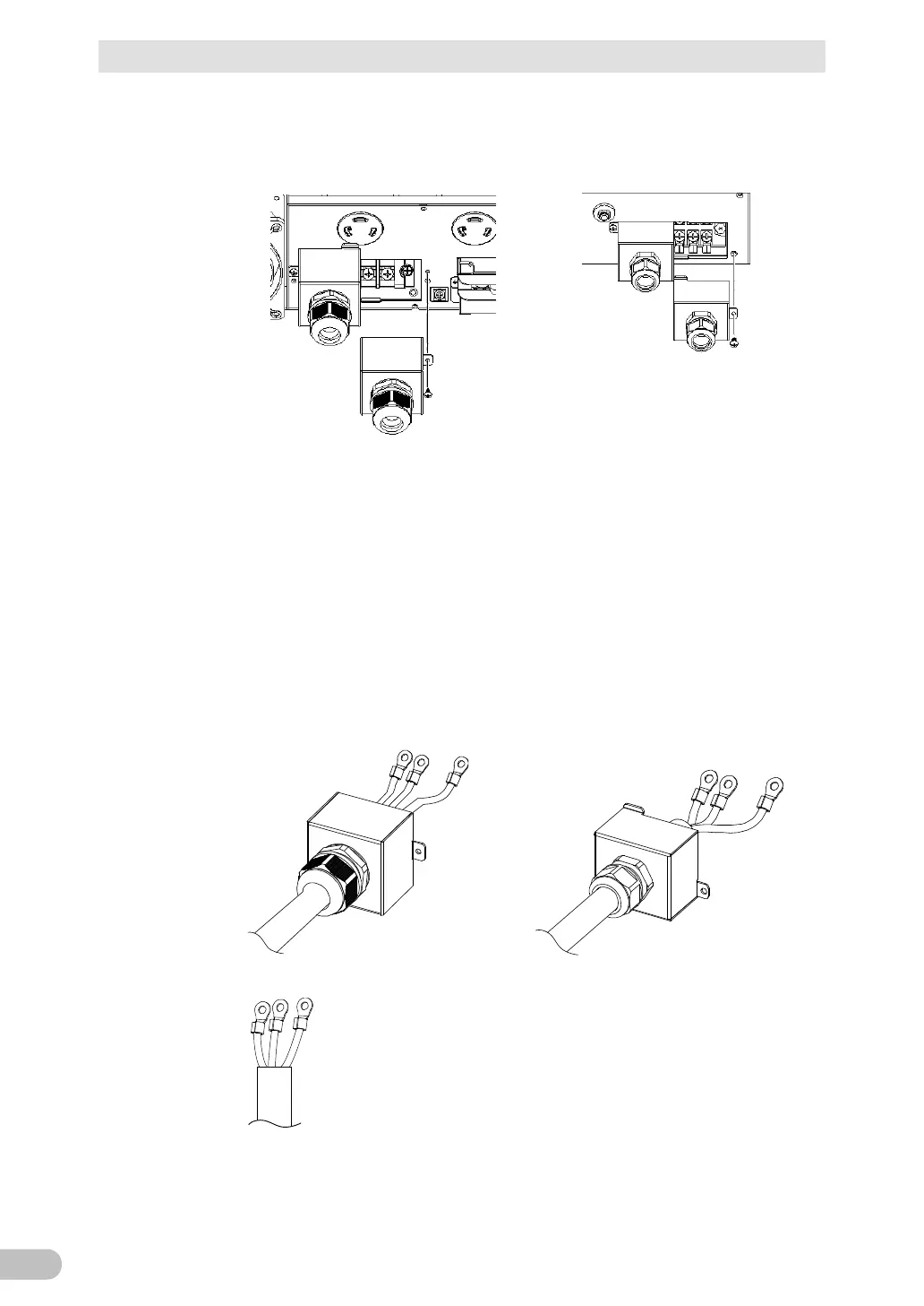 Pass the wires to be connected through the cable clamp hole on the terminal