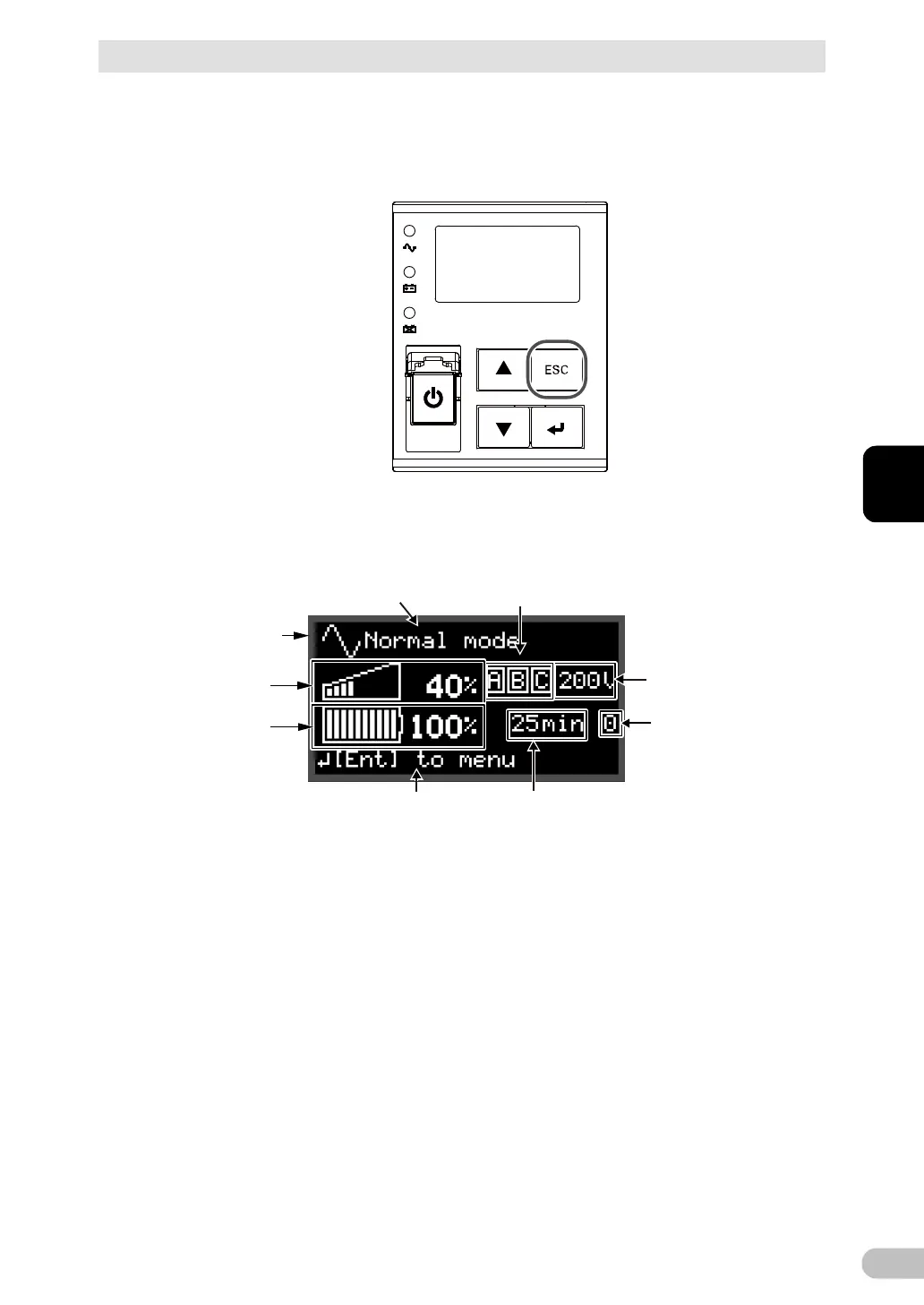 An icon representing the status of the UPS is displayed. See “3-1-7 How to interpret icons,