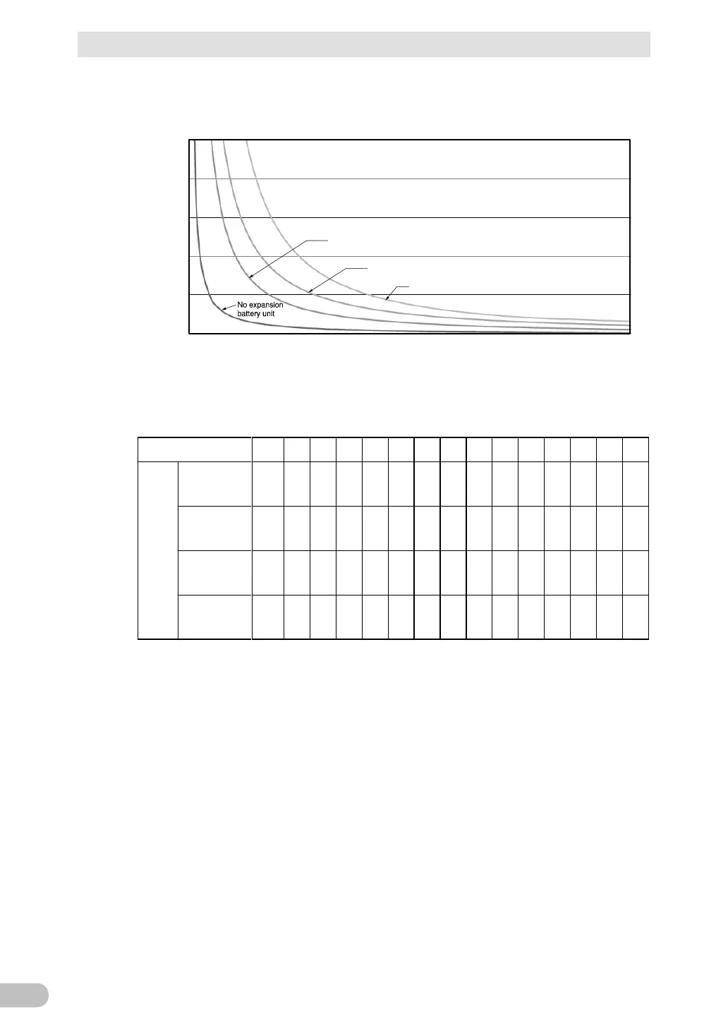 Backup time graph (initial value for a new product. Graph with properties at 25°C)