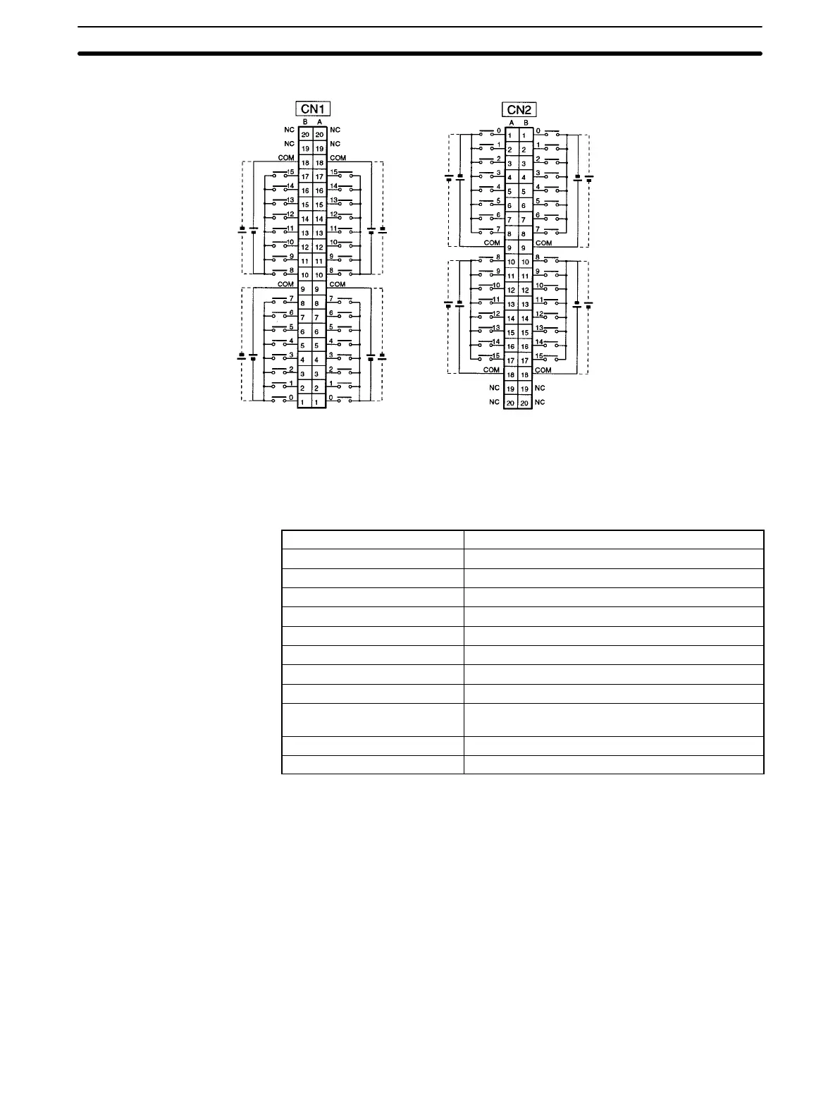 2. COM terminals for CN1 and CN2 must all be wired even though they are connected internally.