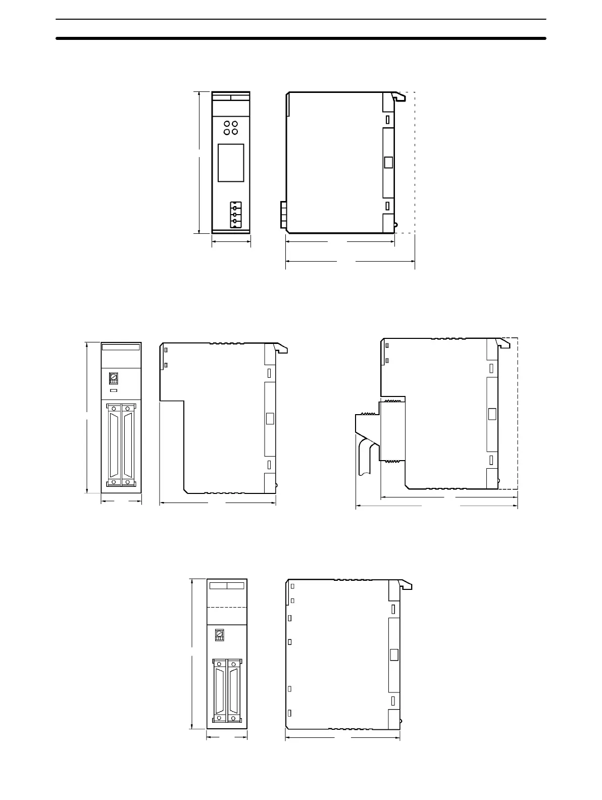 The dimensions shown below are for the High-density I/O Units classified as Special I/O Units.