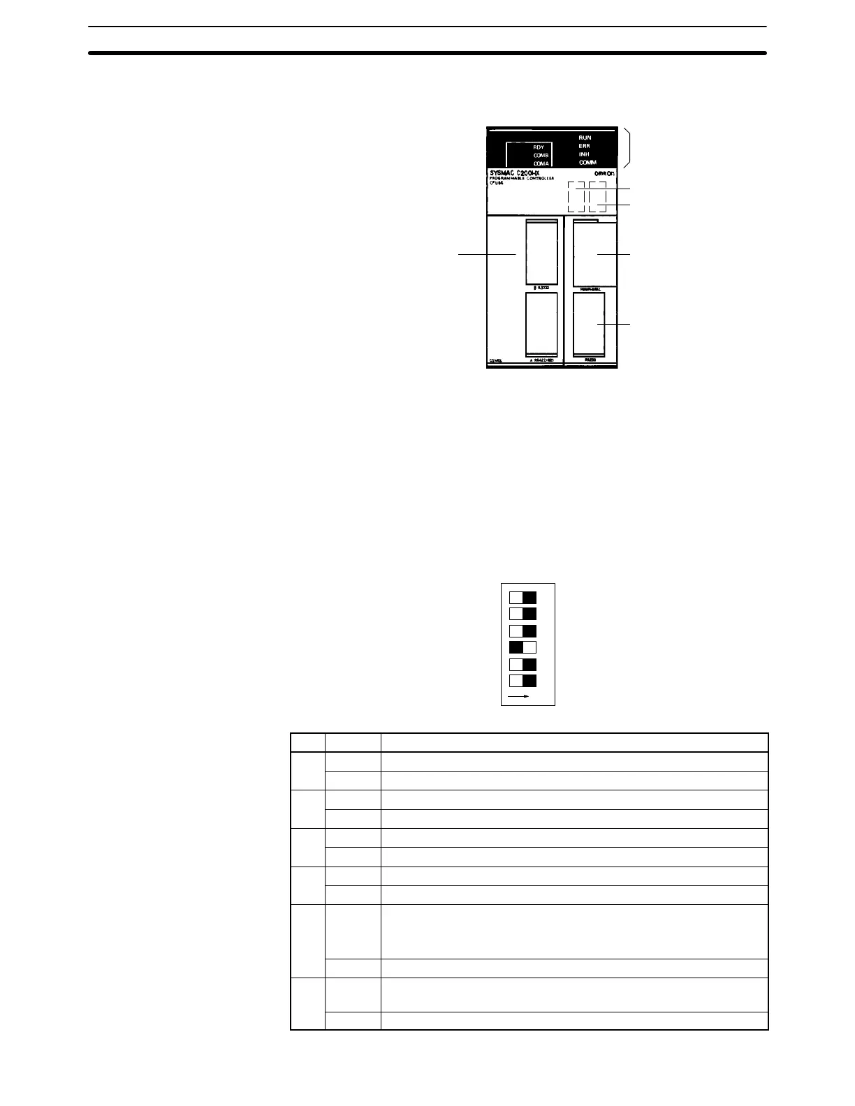 DIP Switch The PC operates according to the DIP switch settings of the CPU Unit. The DIP
