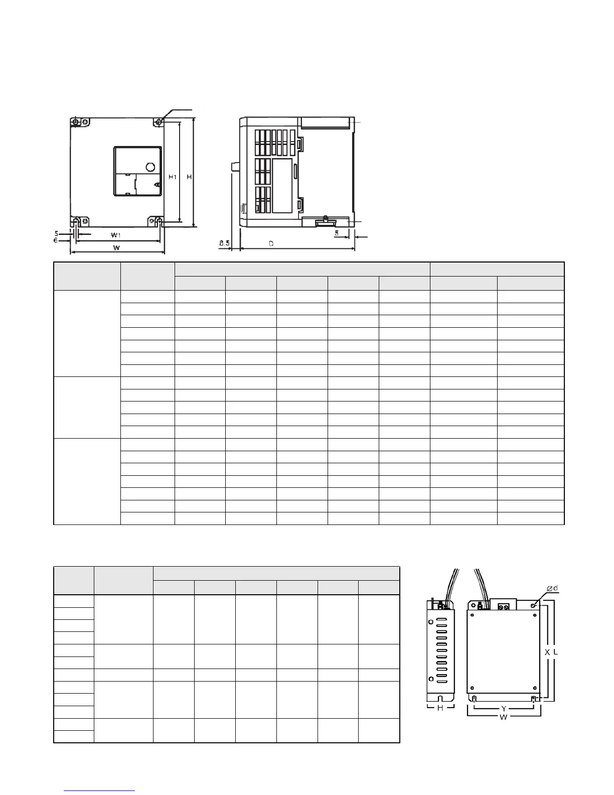 l H P L1 H1 MCCB (A) Câble (mm²)