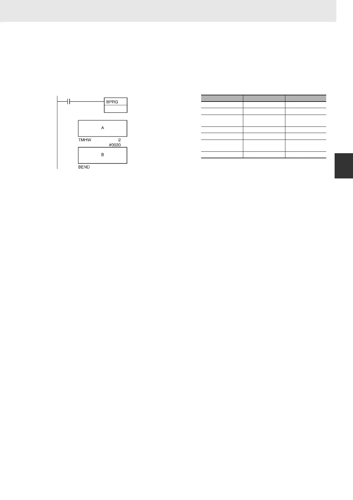 When 0.01 is ON, BPRG1 is executed. After program A is executed, the set value is preset in timer 2