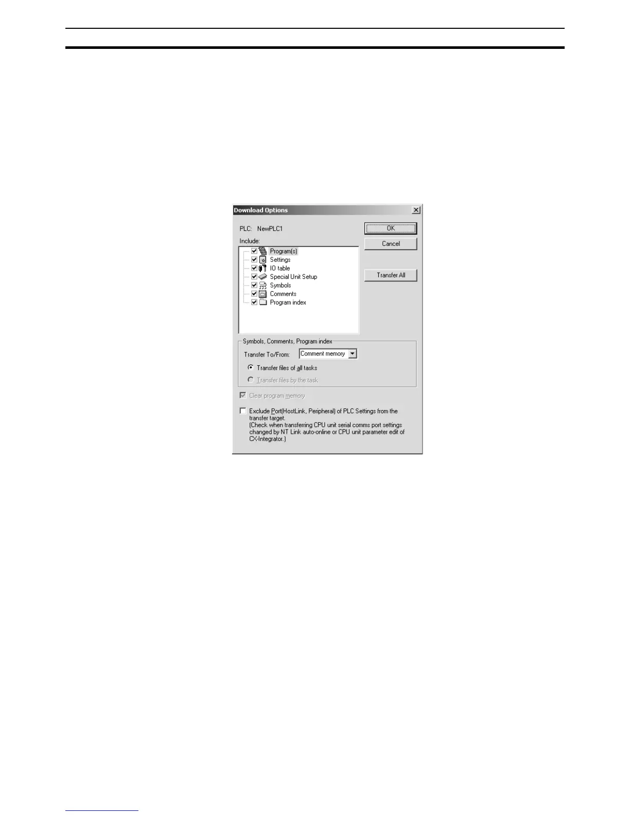 1,2,3... 1. Select PLC, Transfer, and then To PLC. The Download Options Dialog