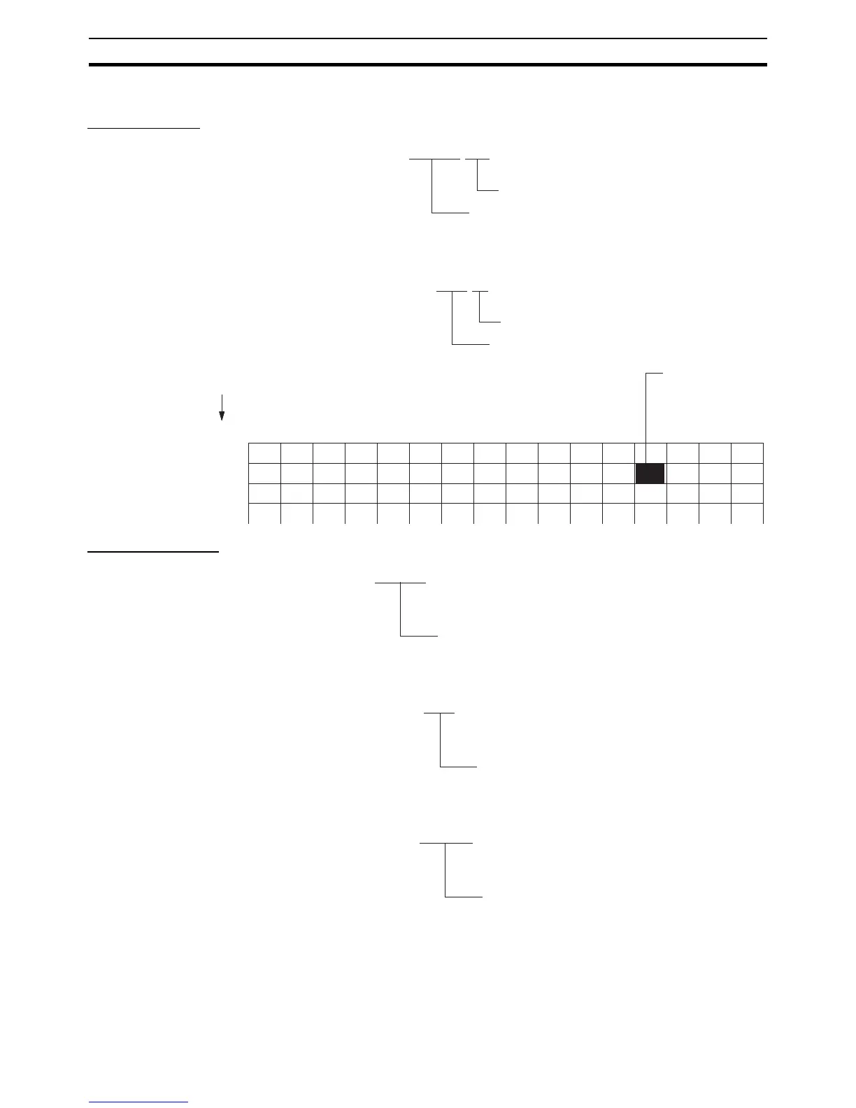 Example: The address of bits 00 to 15 in word 0010 in the CIO Area would be