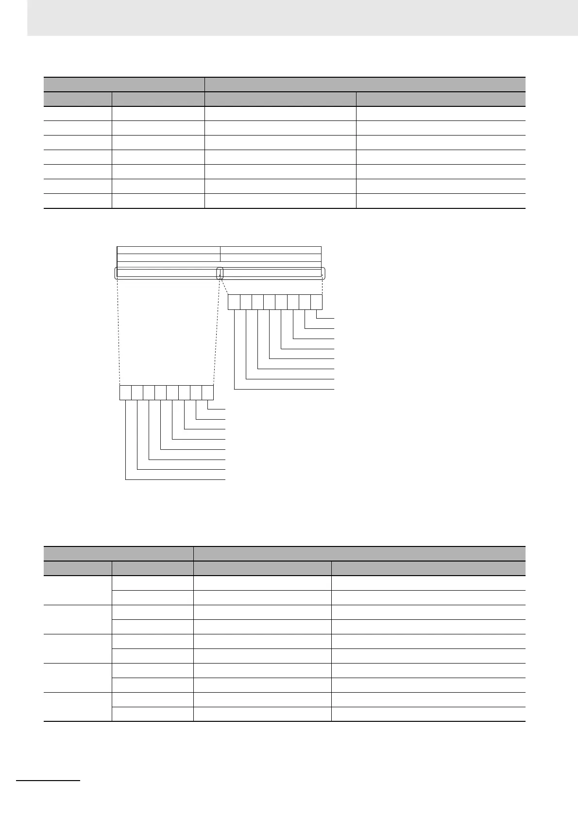 The functions of bits 0 to 7 and 8 to 15 of each word correspond to the functions of bits 0 to 7 on the