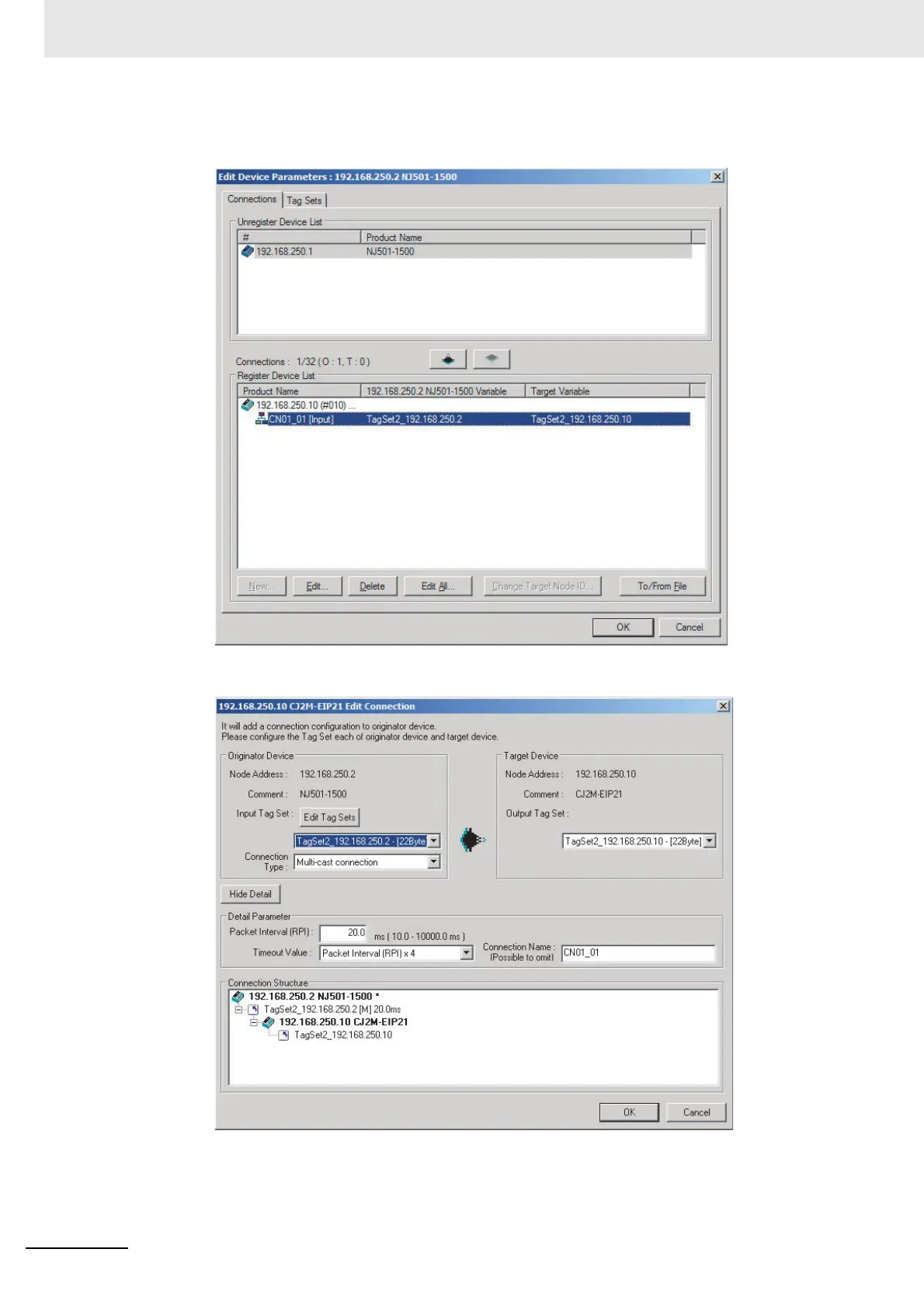 (4) The device’s Edit Connection Dialog Box will be displayed. Input a new packet inter-