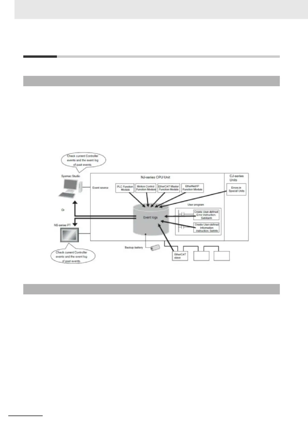 Refer to the NJ-series CPU Unit Software User's Manual (Cat. No. W501) for details on the event logs