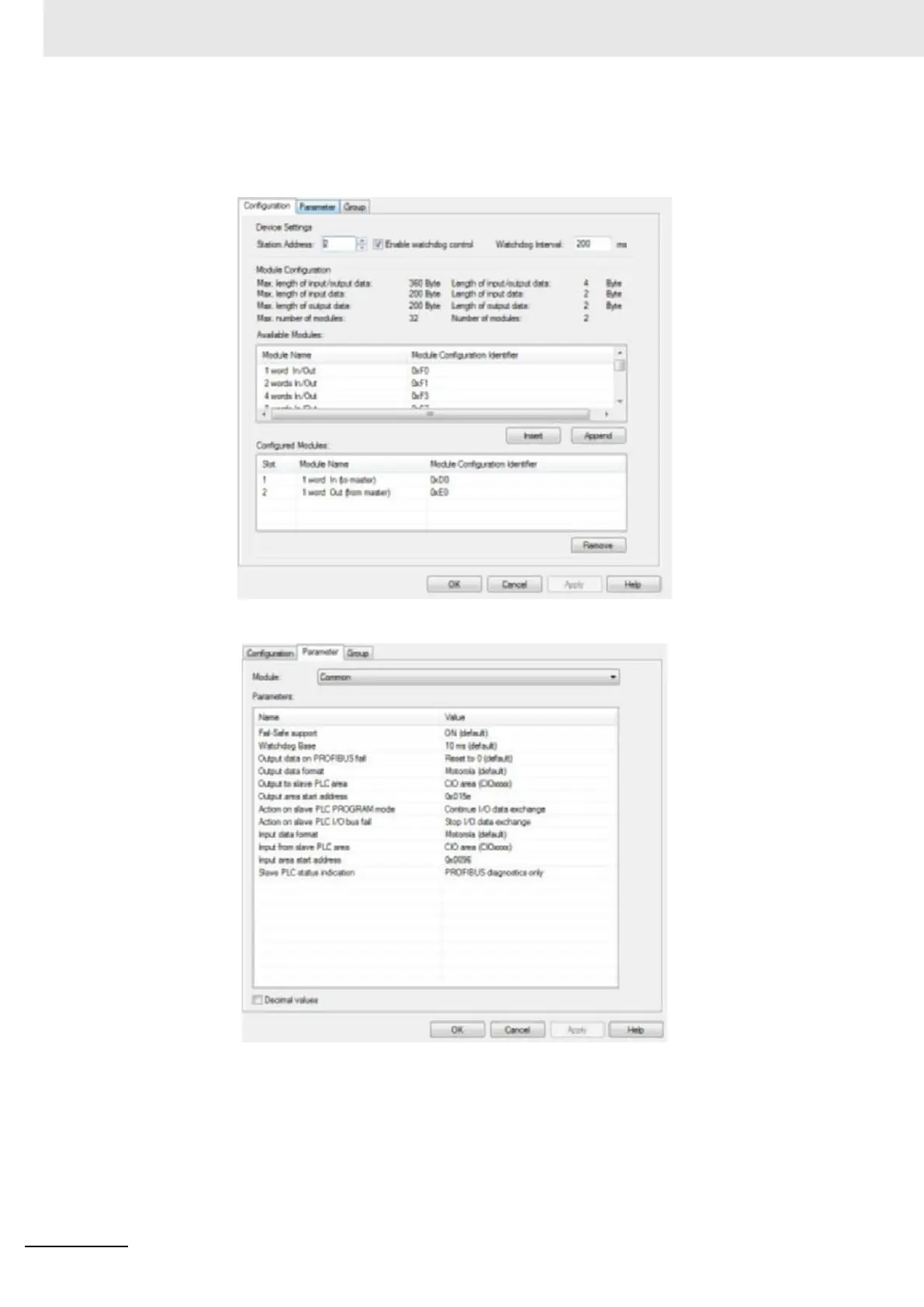 • 1 Word Input Allocation (from slave) to CPU area CIO 3300