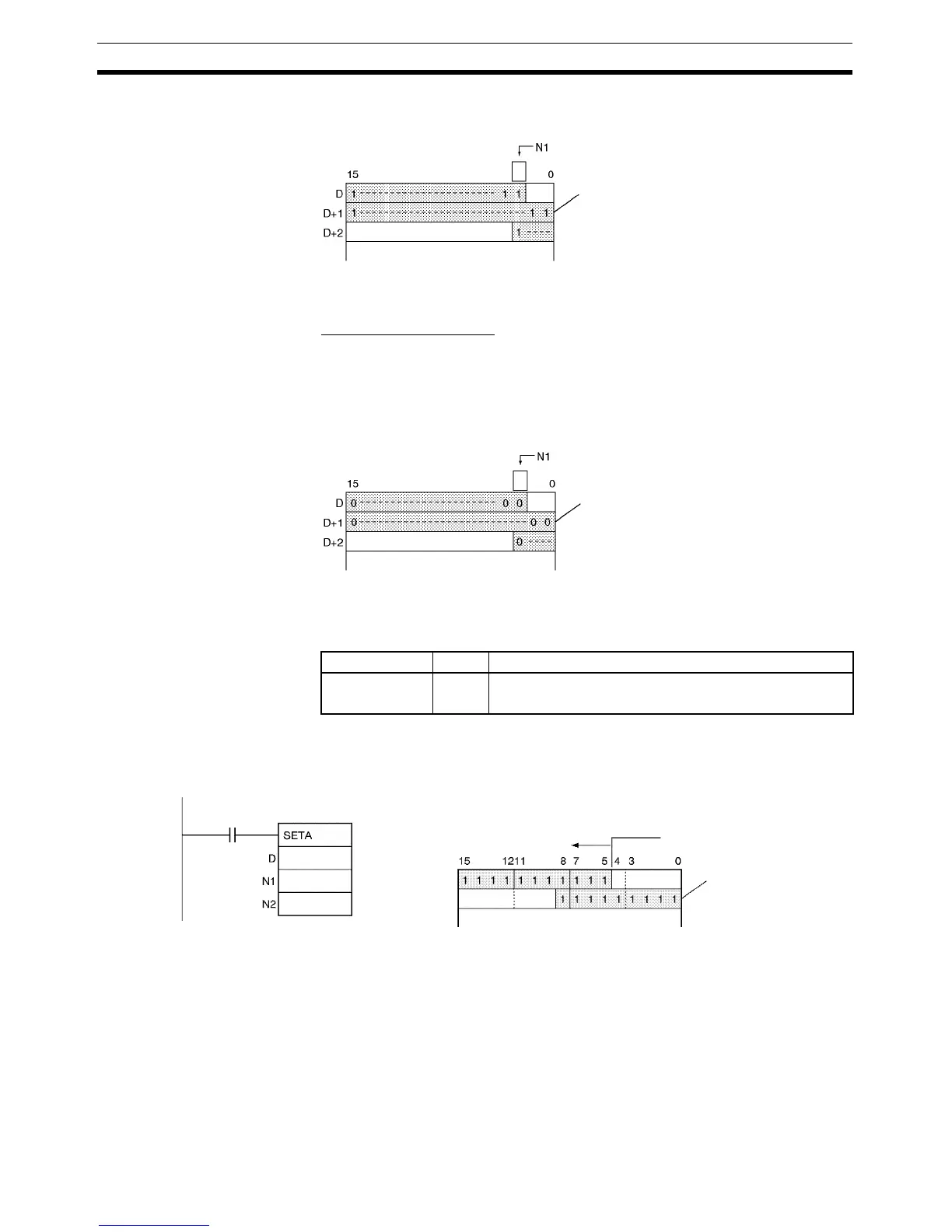 Bits turned ON by SETA(530) can be turned OFF by any other instructions,