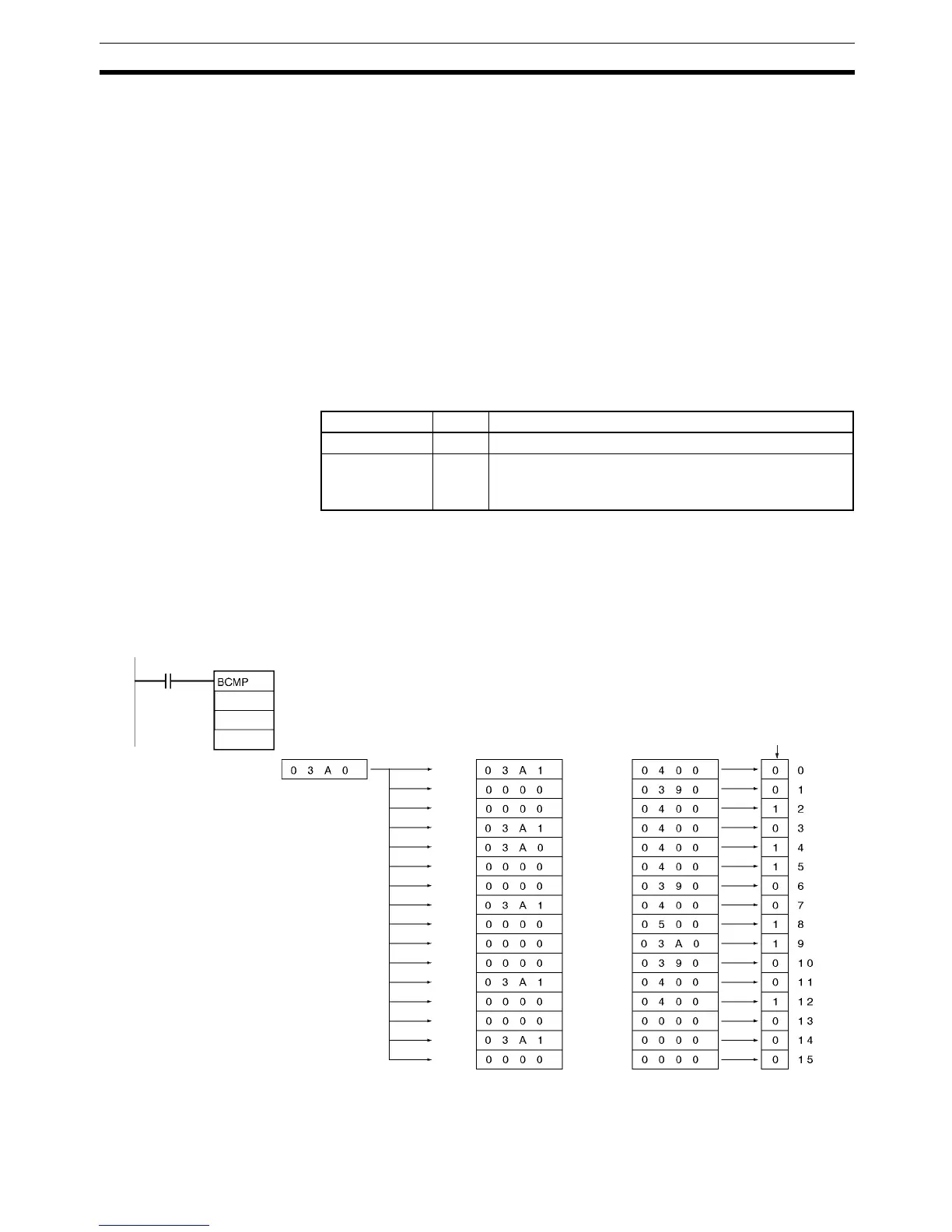Example When CIO 0.00 is ON in the following example, BCMP(068) compares the