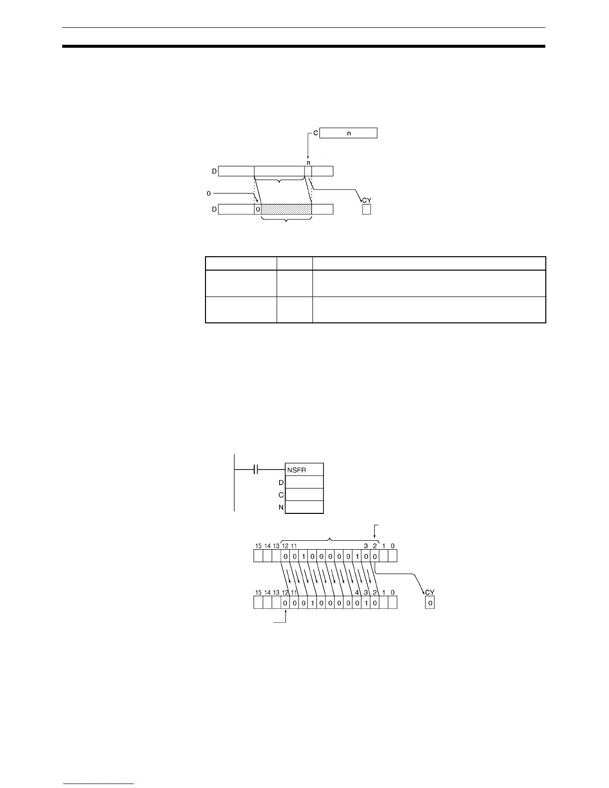 Description NSFR(579) shifts the specified number of bits by the shift data length (N) from