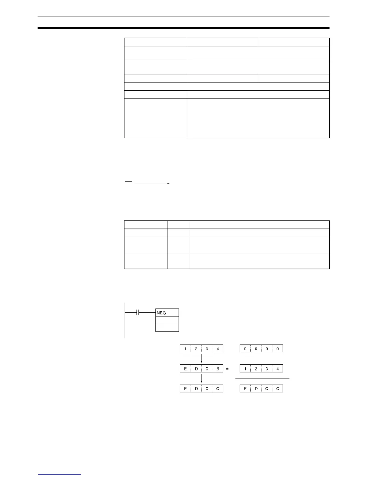 Example When CIO 0.00 is ON in the following example, NEG(160) calculates the 2’s