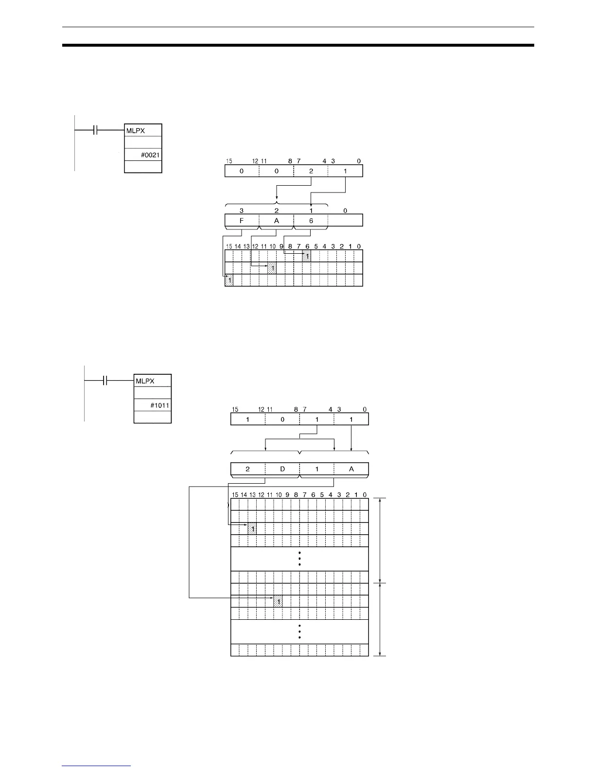 When CIO 0.00 is ON in the following example, MLPX(076) will convert 3 dig-