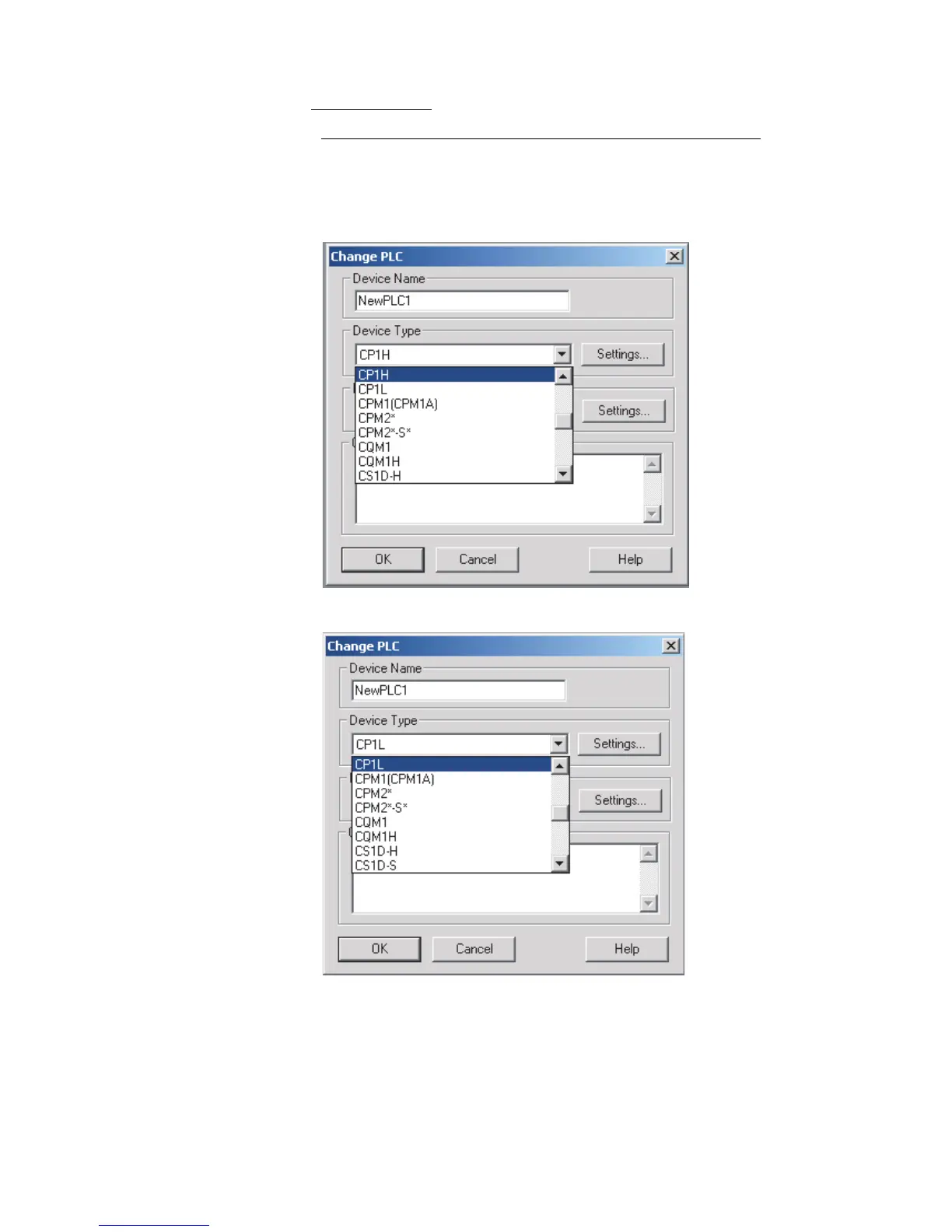 1,2,3... 1. If you know the device type and CPU type, select them in the Change PLC