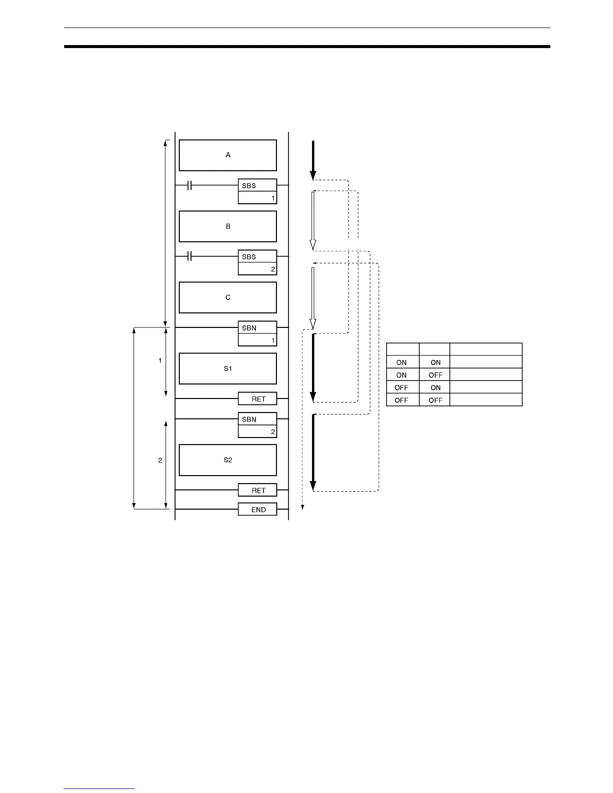 CIO 0.01 is ON, subroutine 2 is executed and program execution returns to