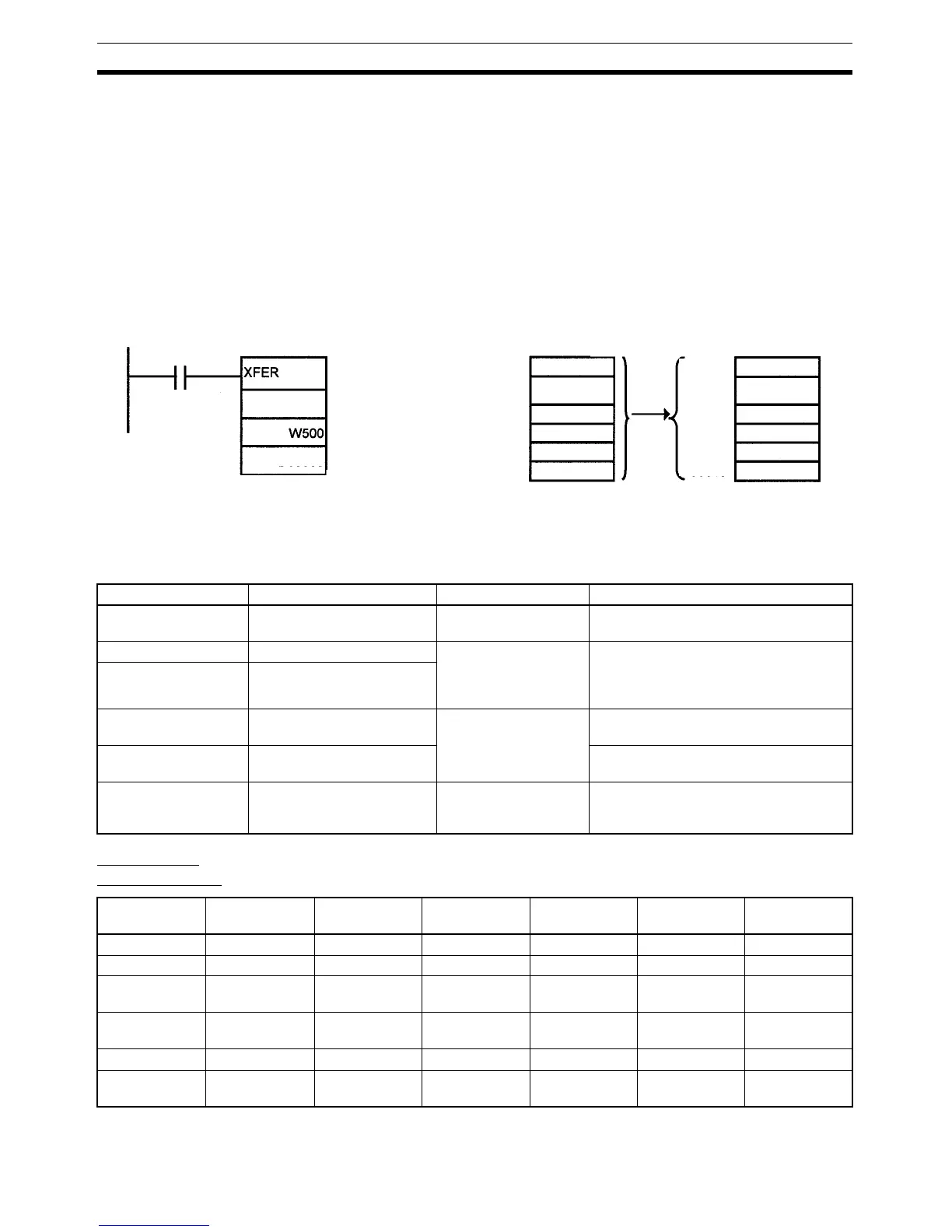 XFER(070) if 20 words are specified for transfer beginning with W500. Here,