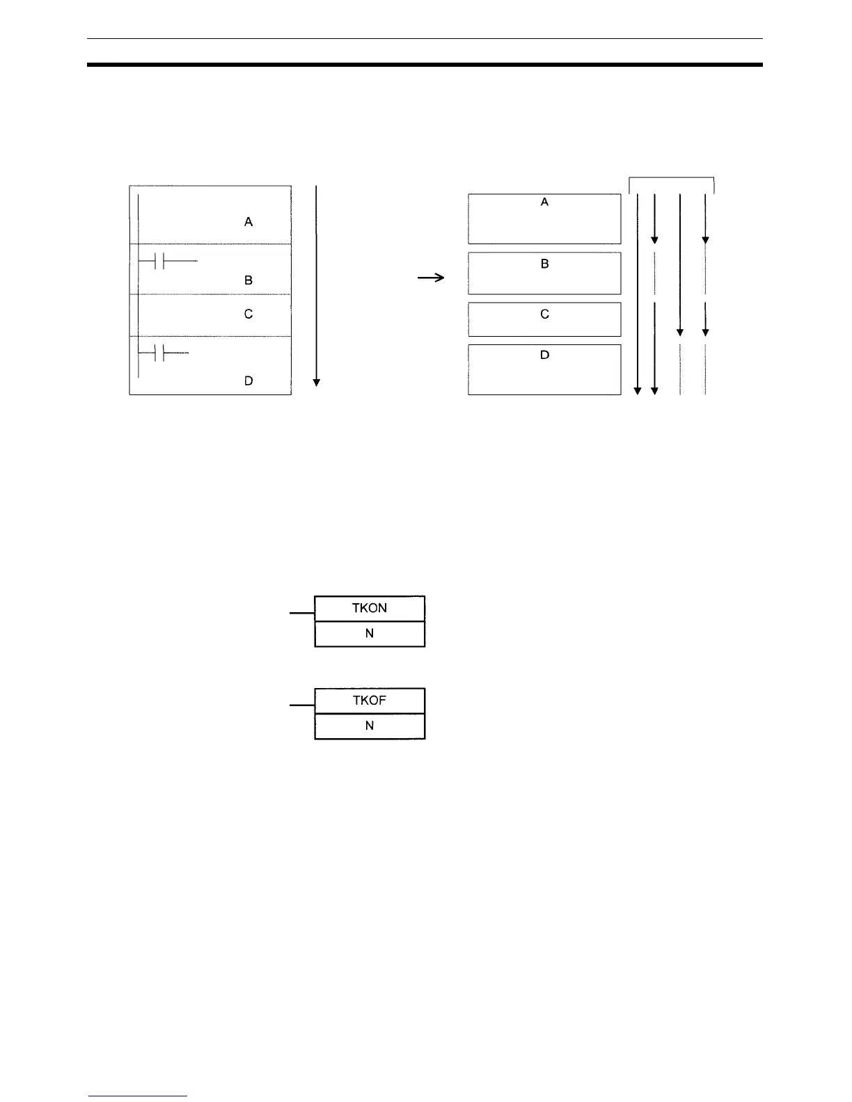 The TASK ON (TKON(820)) and TASK OFF (TKOF(821)) instructions switch a