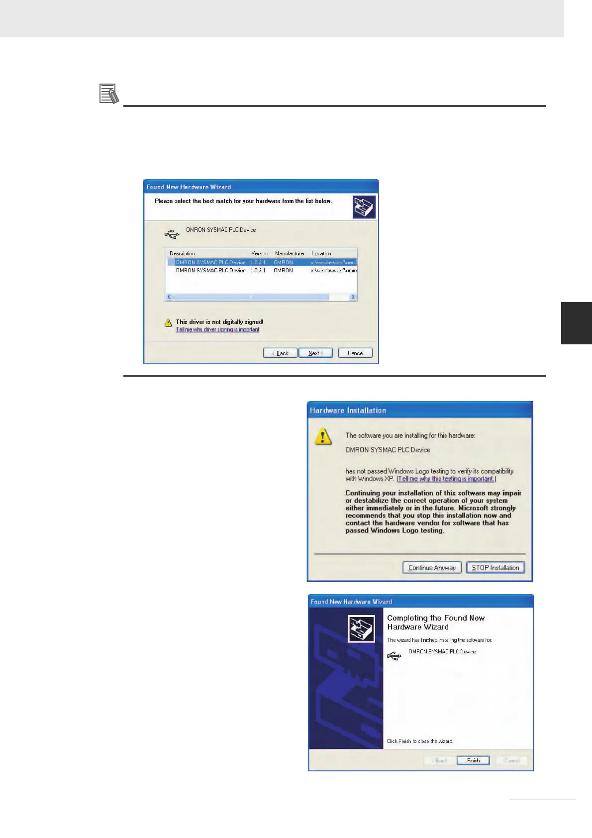 • If the installation media is not inserted or the USB device driver is installed for another port, a