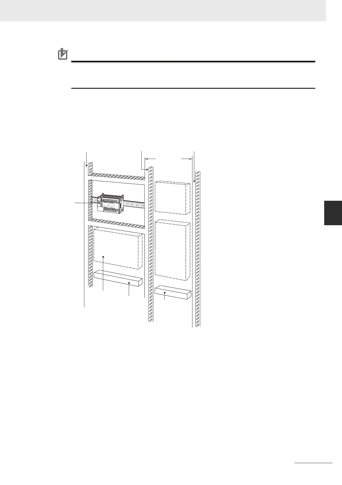 Install the wiring ducts at least 20 mm between the tops of the Racks and any other objects, (e.g.,