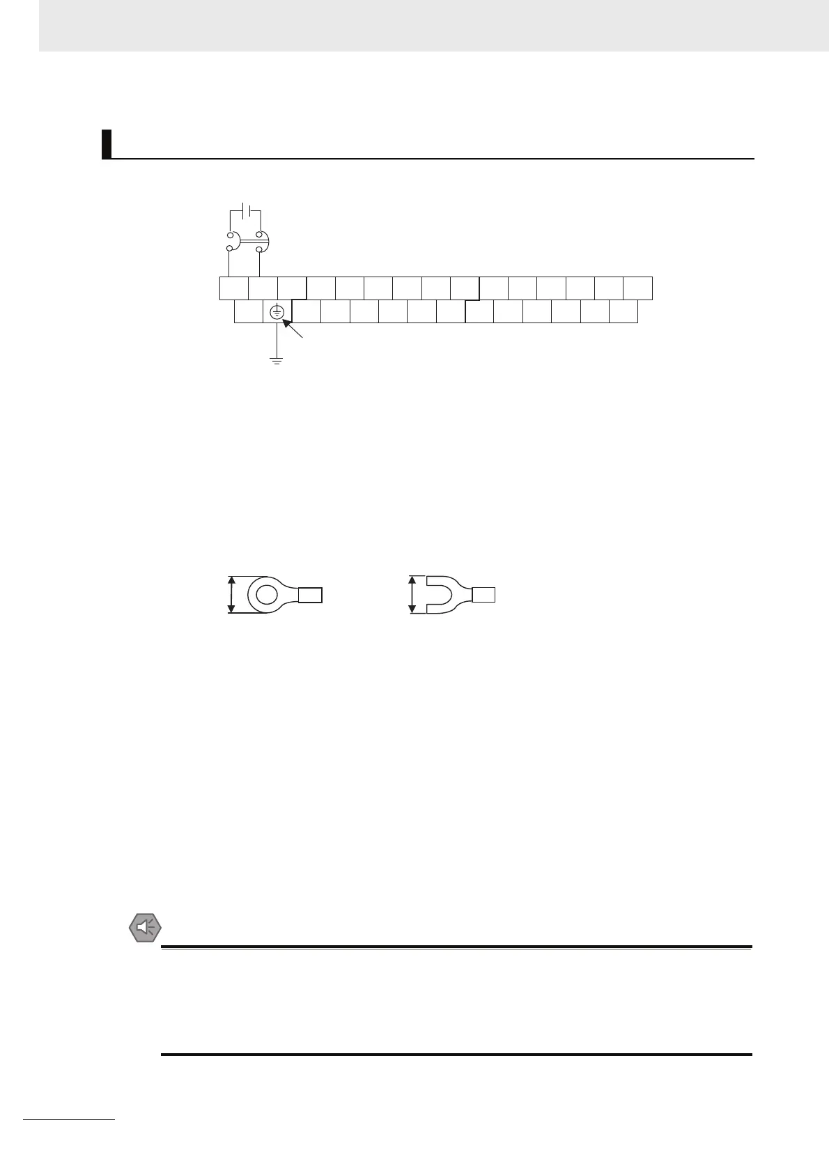• Use crimp terminals or solid wire for power supply wiring. Do not connect bare stranded wires