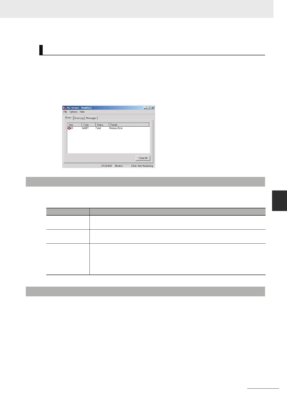 The PLC Errors Window will be displayed. Click the Errors Tab. The current errors will be dis-