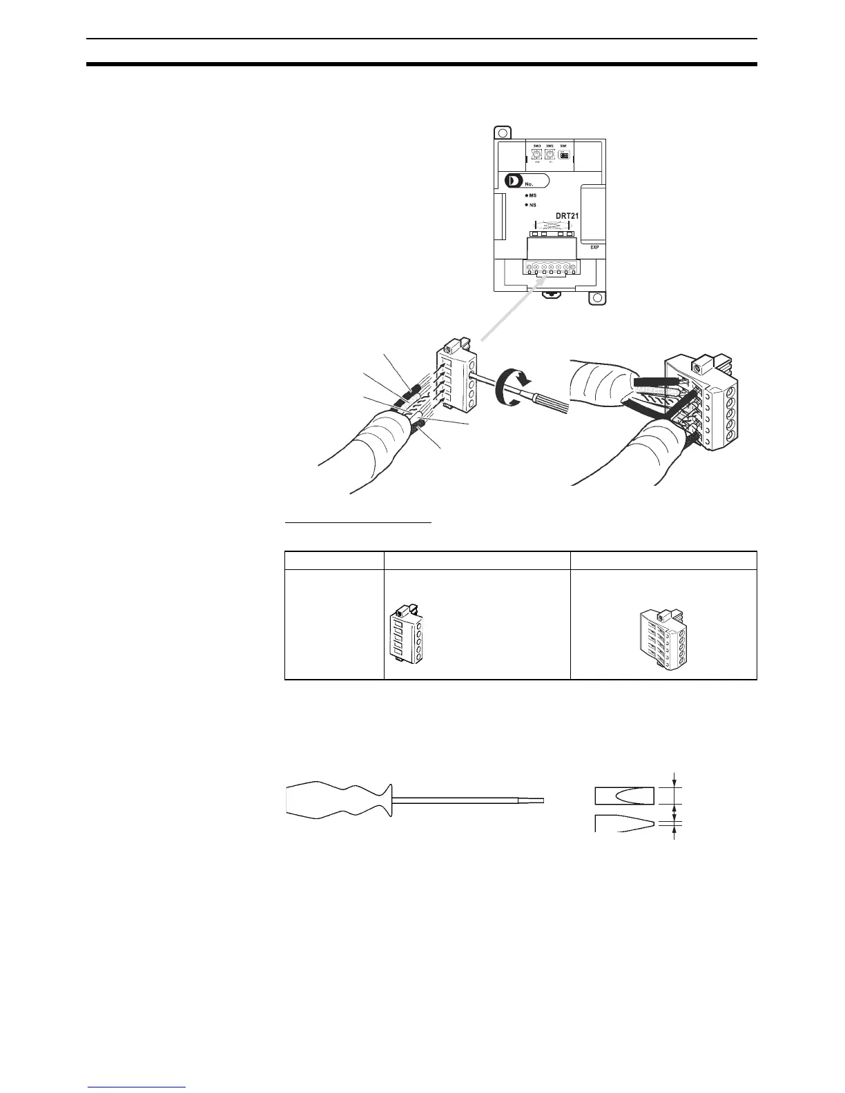 When using a CPM1A-DRT21 DeviceNet I/O Link Unit, wire the DeviceNet